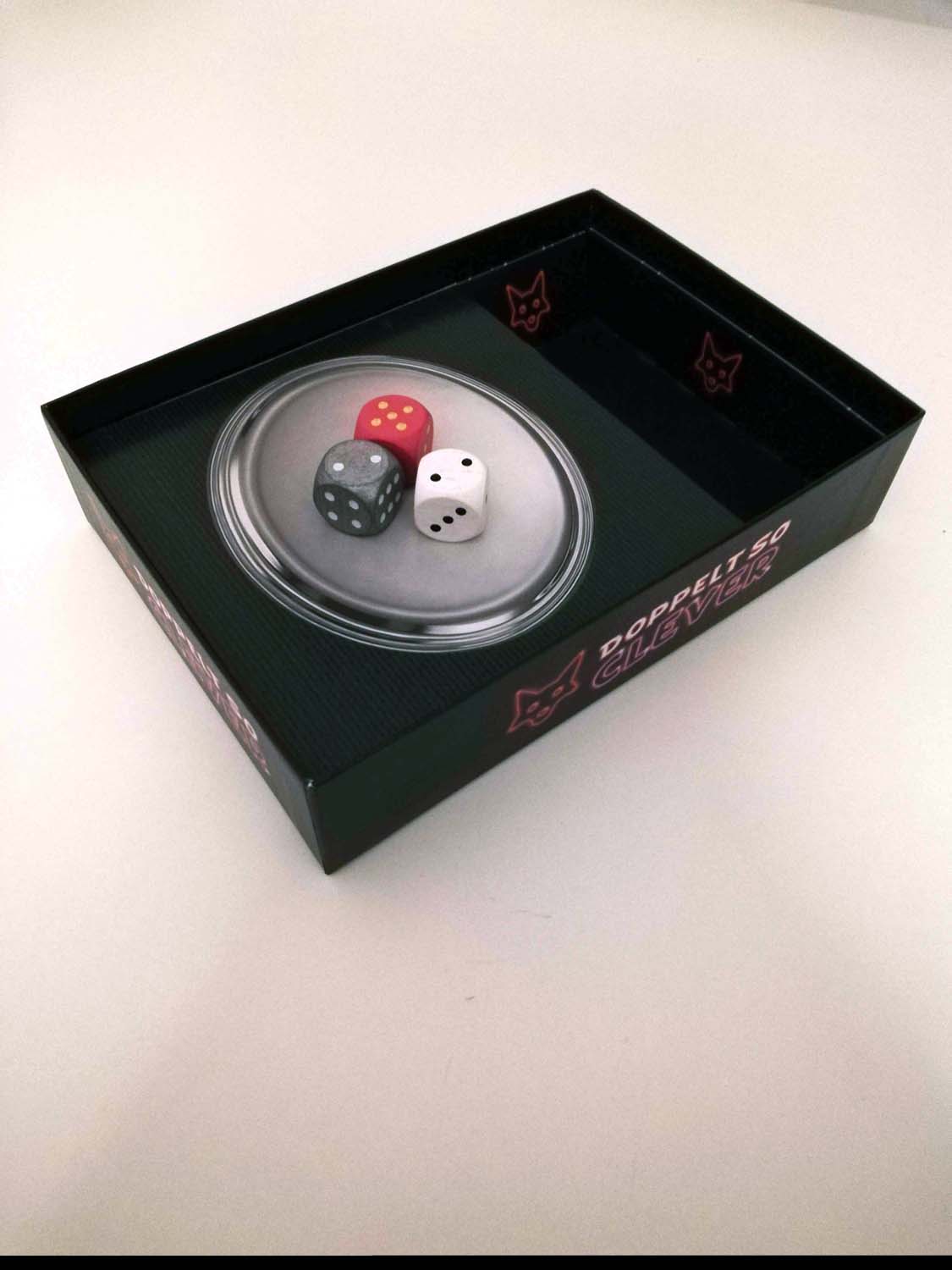 Unter der Haube verbirgt sich dann auch ein wunderbares Spiel, dass aufgrund der geringen Wartezeiten vor allem zu zweit mächtig punktet bei mir. Aufgrund der Materialfülle ist „Doppelt so clever“ in weniger als einer Minute aufgebaut. Mir ist zwar jedes Mal schleierhaft, wieso man den Zettelblock nicht gegen eine laminierte Folie ersetzt hat, aber möglicherweise fehlt mir da die betriebswirtschaftliche Sichtweise auf die Problematik. Sei es drum.