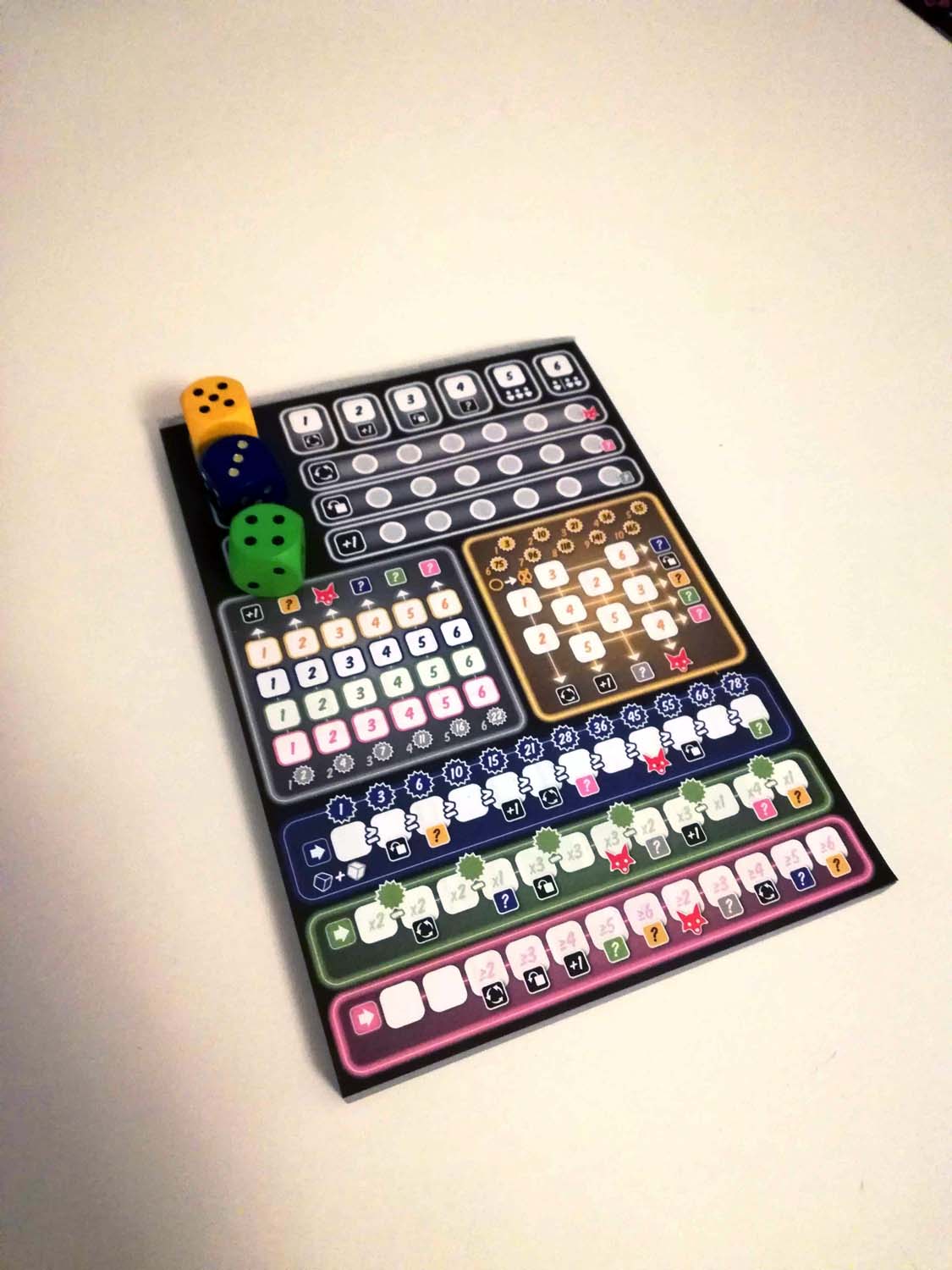 Tags: Solospiel, Würfelspiel, 1-4 Spieler, Würfelplatzierung, Roll-and-Write, Würfel