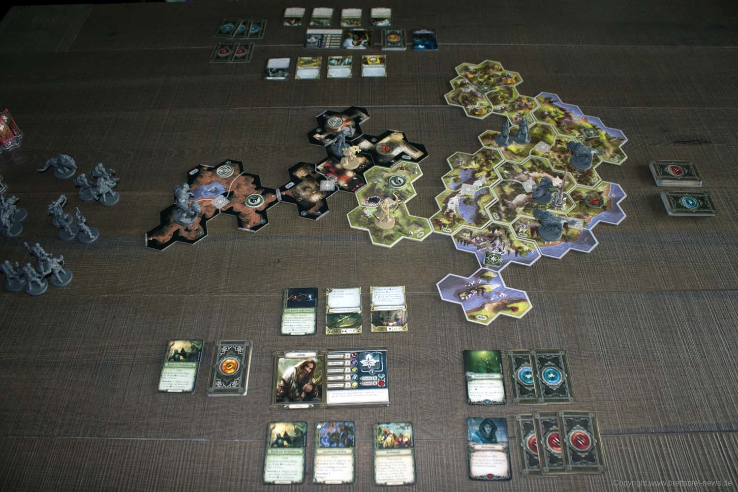 Auf „Der Herr der Ringe: Reise durch Mittelerde“ war ich nach der Ankündigung sehr gespannt. Die ersten Bilder und die Einbindung der App fand ich spannend, da ich großer Fan von „Villen des Wahnsinns (2. Edition)“ bin. Positiv gestimmt hat mich auch, dass mit Grace Holdinghaus eine der Autorinnen von „Villen des Wahnsinns“-Erweiterungen als Co-Autorin maßgeblich an der Umsetzung beteiligt war. Ihr Partner bei der Erstellung war Nathan Hajek, der seinerseits im „Descent“-Universum bei Erweiterungen für die 2. Edition einige Erfahrung gesammelt hat. Für eine gesunde Basis war somit auf jeden Fall gesorgt.