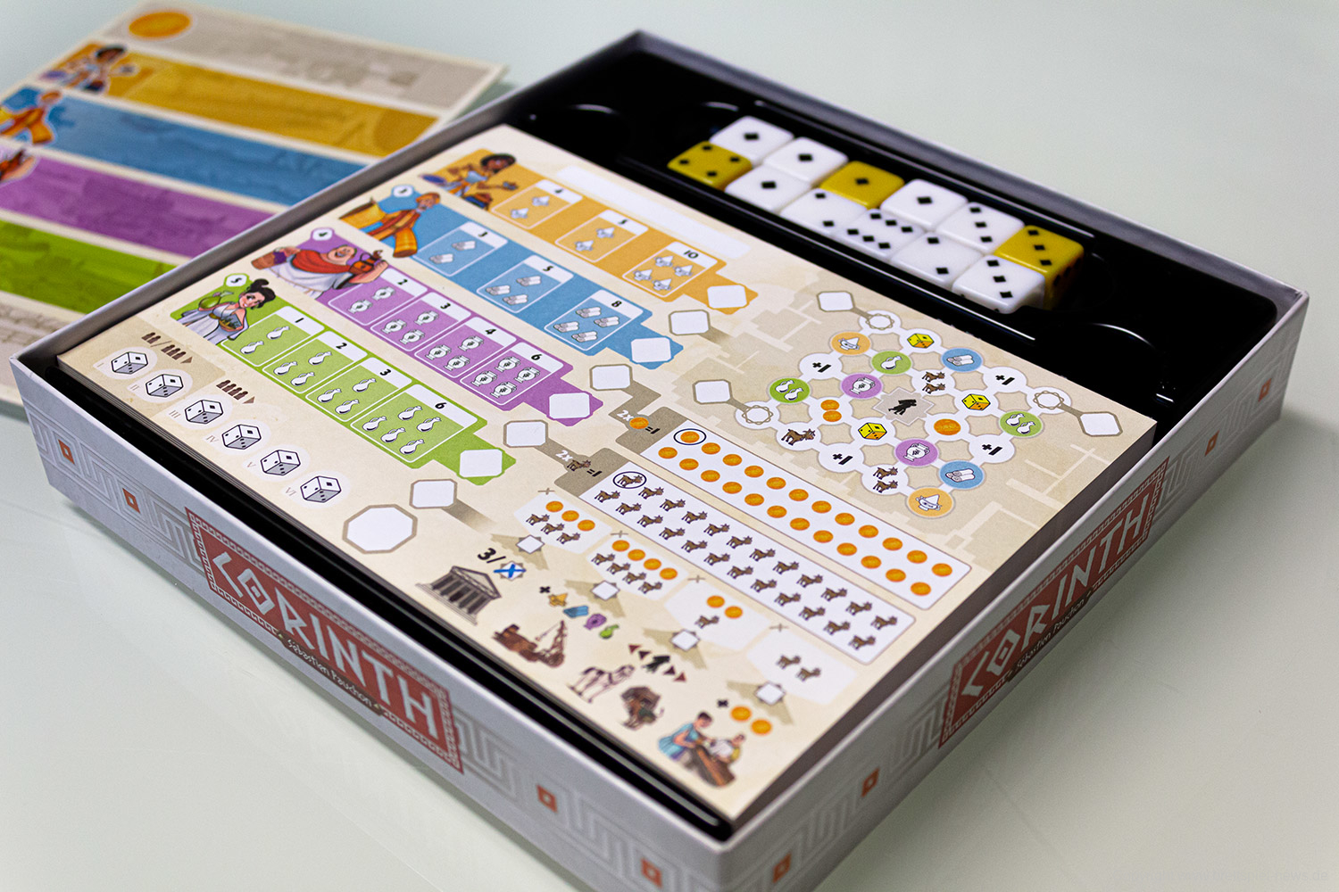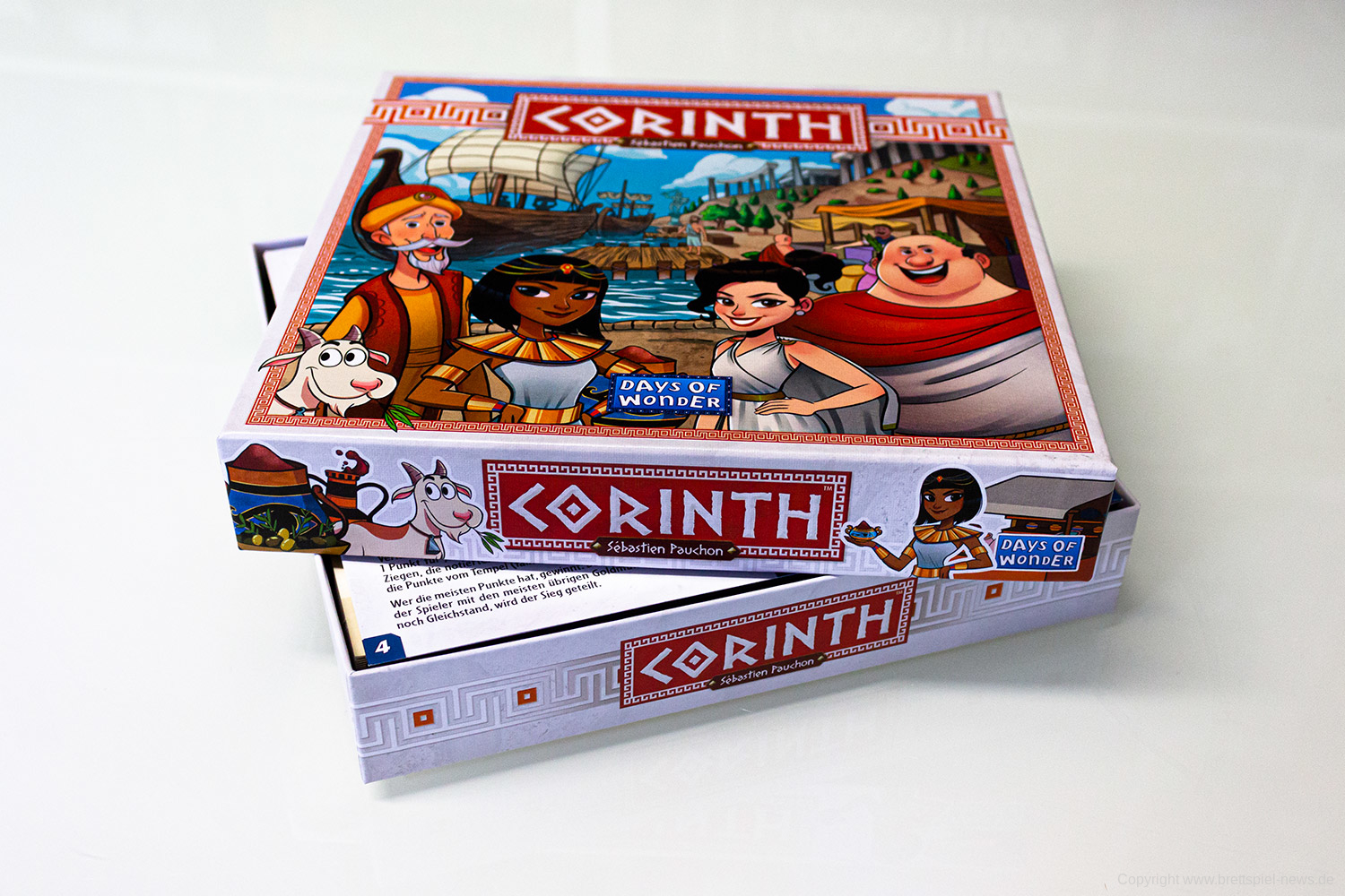 Eine Partie Corinth lässt euch einige Wochen in einer Hafenstadt im antiken Griechenland erleben. Ihr übernehmt die Rolle von Kaufleuten, die Waren und Ziegen ausliefern, um zu den Besten ihrer Zunft zu werden …