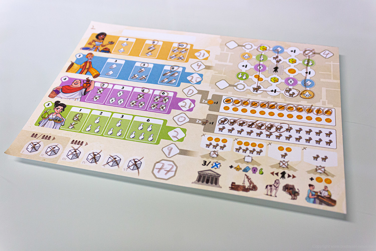 Mit etwas mehr als 20€ ist „Corinth“ sicherlich nicht das günstigste Roll & Write Spiel. Das Spielmaterial ist hochwertig gedruckt, die Icons sind gut zu erkennen und vom Start weg selbsterklärend. Der Spielblock ist so großzügig ausgestattet, dass sehr viele Spiele gespielt werden können. Das Papier ist bestens für verschiedene Stifte geeignet. Gemessen am Preis geht der Lieferumfang durchaus in Ordnung.