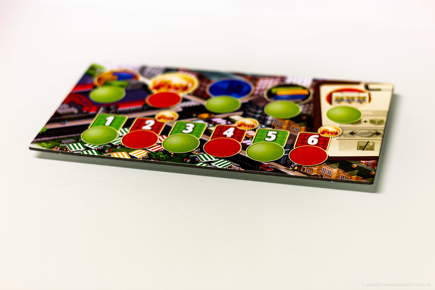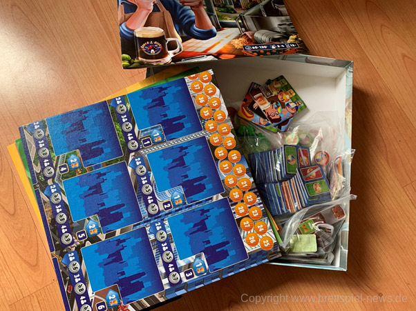 Wer gerne ausstanzt wird in Beer Empire seinen Freund finden – wer ein Kleinkind ist (oder hat) vielleicht eher weniger. Denn Beer Empire kommt mit unzähligen kleinen Tafeln, Plättchen und Kärtchen. Diese sind alle aus dicker Pappe und kräftig bemalt und verleihen dem Spiel so einen hochwertigen Eindruck. Gleiches gilt für die Kiste selbst und den Spielplan. Grafiker Pawel Niziolek hat bei der Gestaltung offenbar keine Mühe gescheut, allerdings hätte uns im Test ein dezenteres Design besser gefallen: Die Farben wirken sehr knallig und in der Masse unübersichtlich. Einige Plättchen, wie beispielsweise die Eigenschaftsmarker für Geschmack, Aroma und Farbe sind einander außerdem unnötig ähnlich und sorgen so bei SpielerInnen für Verwirrung. Auch die Anleitung fällt beim Test negativ auf. Diese ist besonders lang und dennoch besonders unverständlich, was bei Lesern wie Zuhörern für Frust sorgen kann. Beer Empire ist somit kein Spiel für einen schnellen Start.