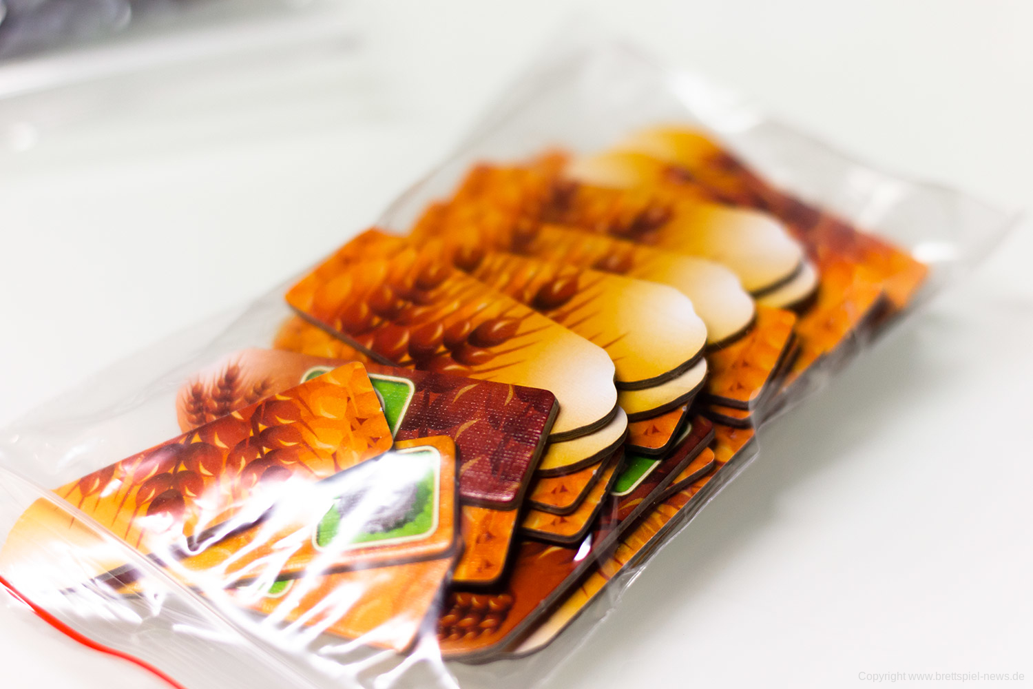 Zunächst wird das Spielbrett samt Kritikern, Festival- und Marktbereich sowie spielereigenen Brauereien ordnungsgemäß aufgebaut. Wie unsere Fotos zeigen, kommen dabei eine Menge Einzelteile zur Geltung. Sind alle Plättchen, Tafeln und Symbole entsprechend an Ort und Stelle, kann die Braukunst beginnen. In Beer Empire werden nacheinander die fünf Phasen einer Runde bearbeitet. Nach sieben Runden gewinnt derjenige Spieler, der bis dahin die meisten Braupunkte erwirtschaftet hat.