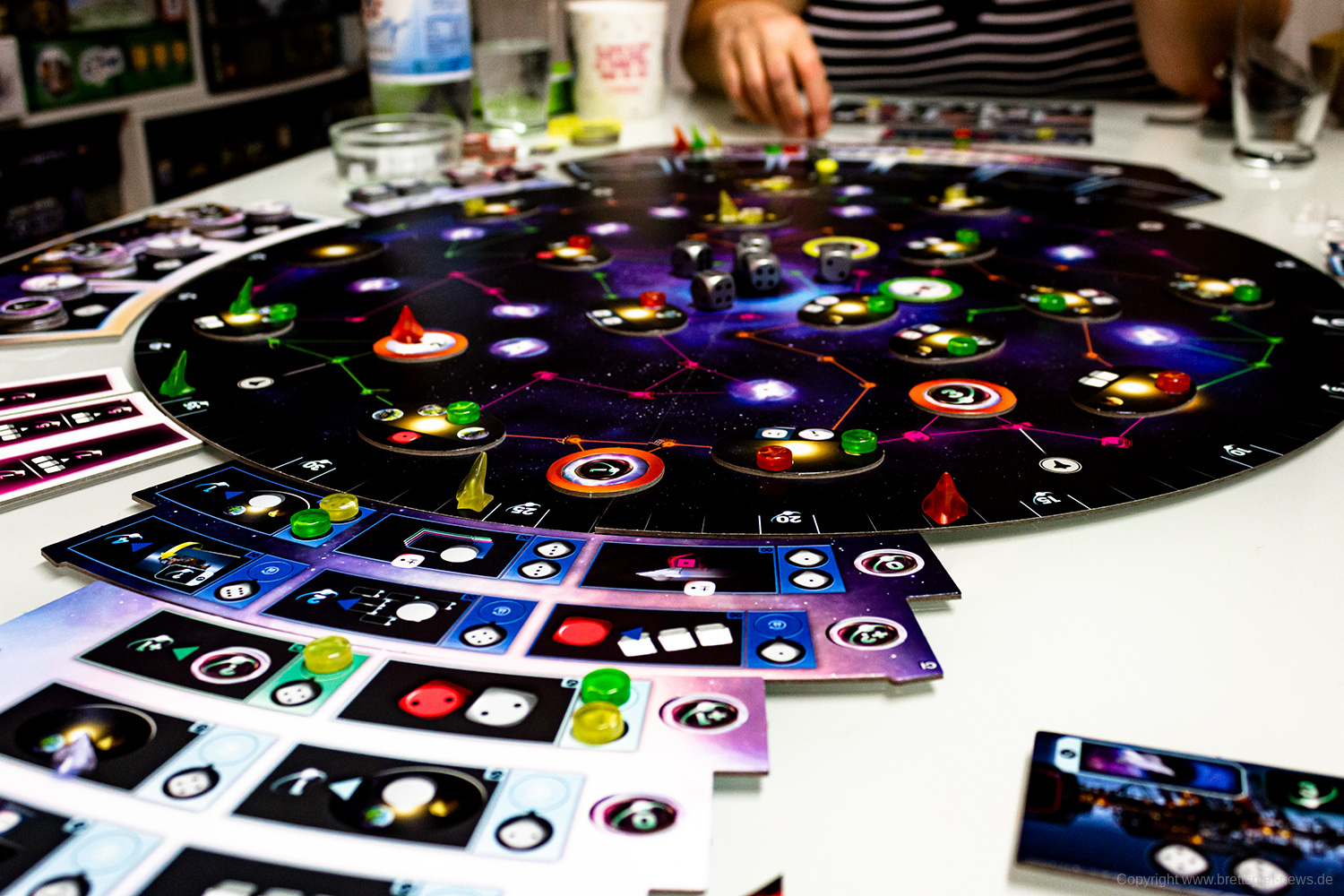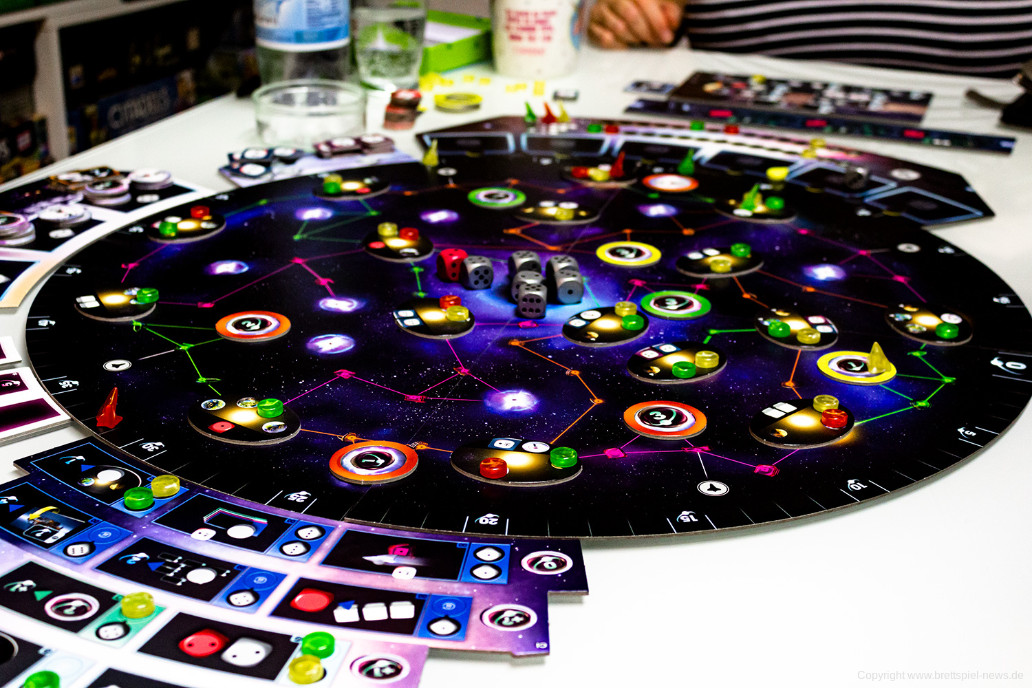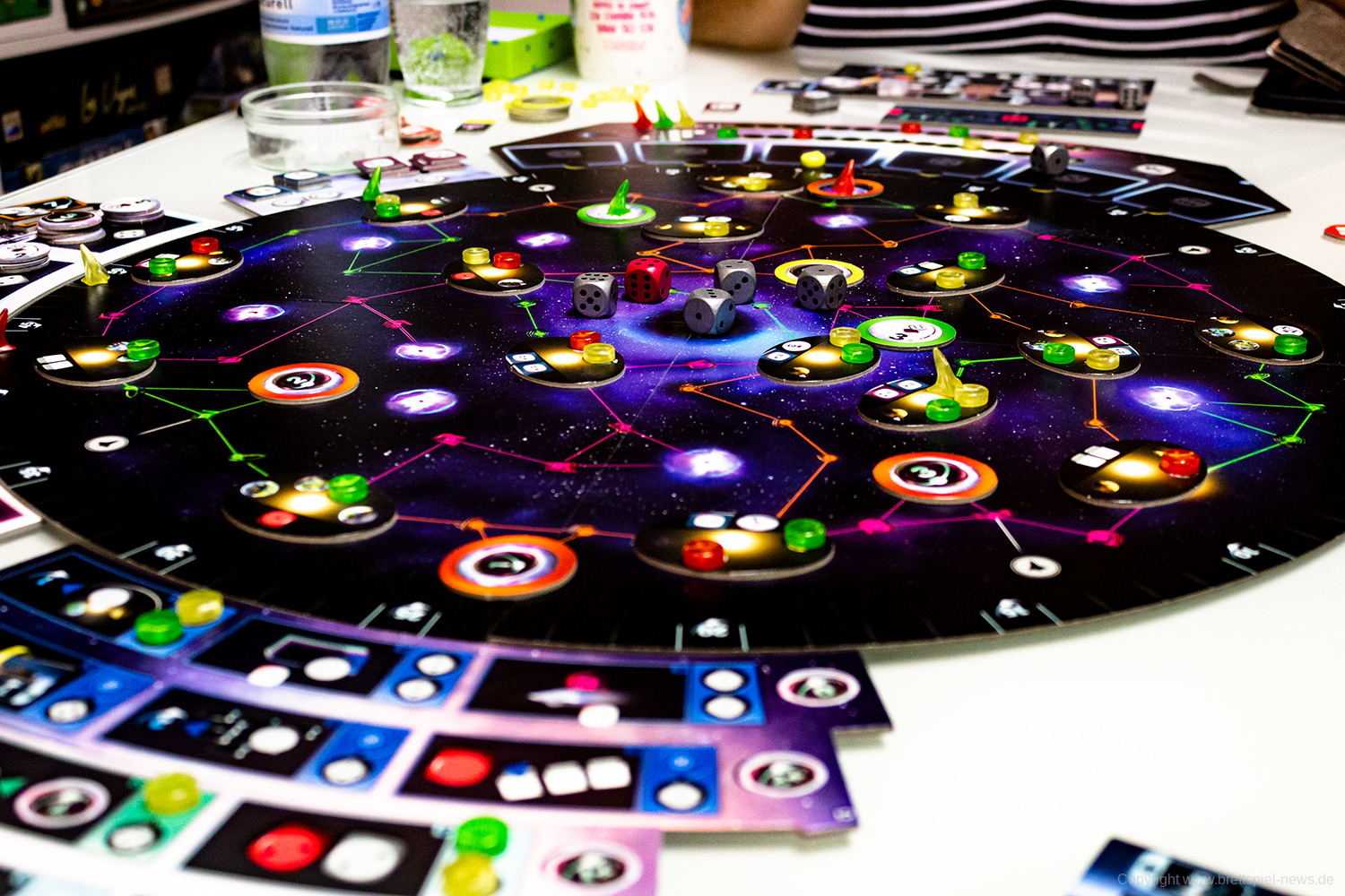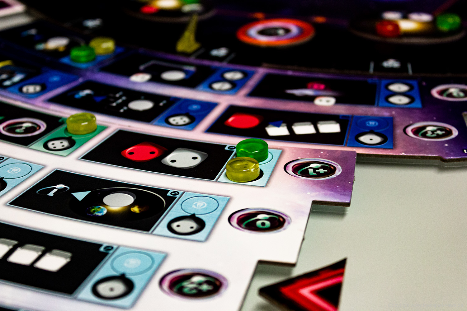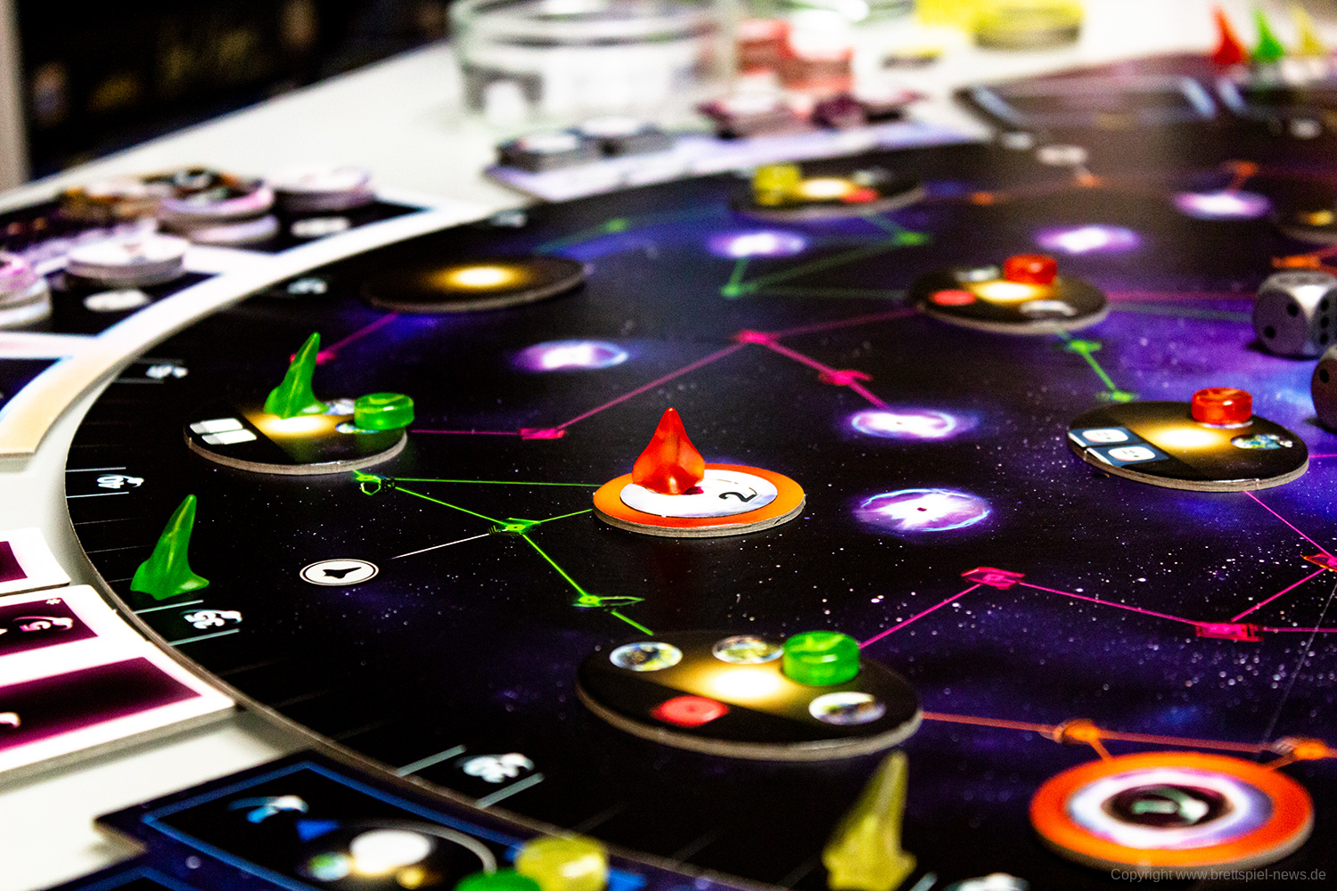 Zudem vermittelt das Spiel ein befriedigendes Gefühl, wenn man sich langsam im Universum ausbreitet, Transmitterstationen errichtet, die Boni bringen, Pulsare besetzt und Technologien erforscht. Jede/r SpielerIn wird belohnt und erhält im Laufe des Spiels immer mehr. Das eskaliert dann zum Spielende mit massig Punkten – Punktezahlen von über 200 sind theoretisch möglich, haben wir beim Spielen aber nicht erreicht.