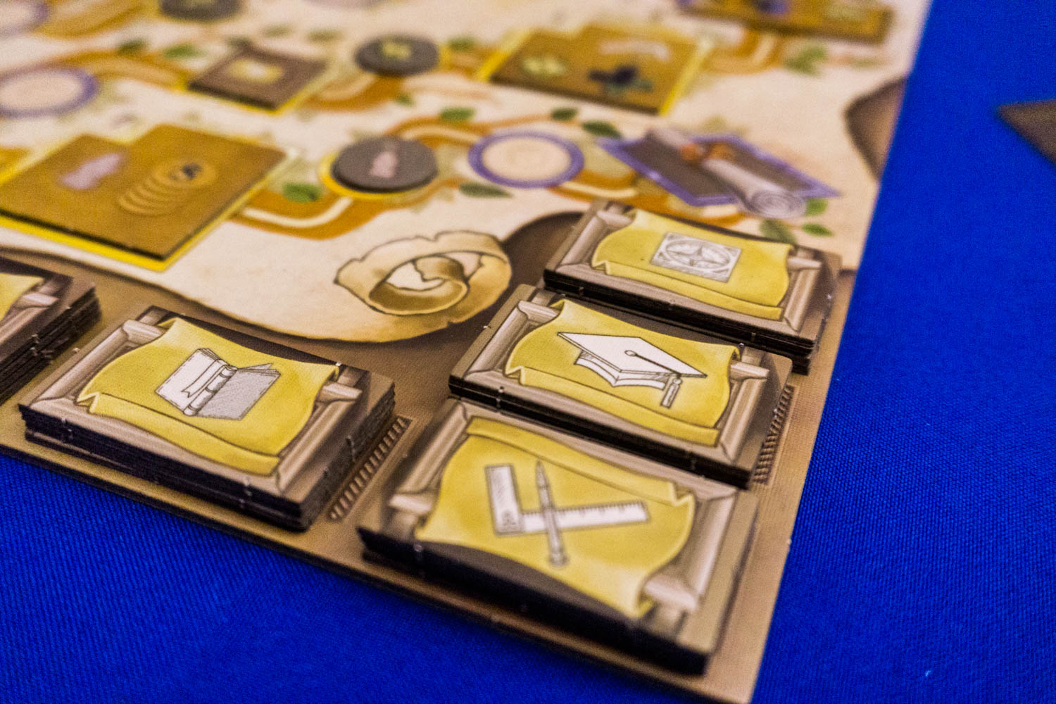 - Technologie: Bewege deine Studenten auf dem Technologiebaum weiter. Jeder eingesammelte Bonus wird als Dauereffekt oder Soforteffekt dem Spieler gutgeschrieben. Mögliche Boni sind Siegpunkte, ein weiterer Student, Trank, Geld usw.