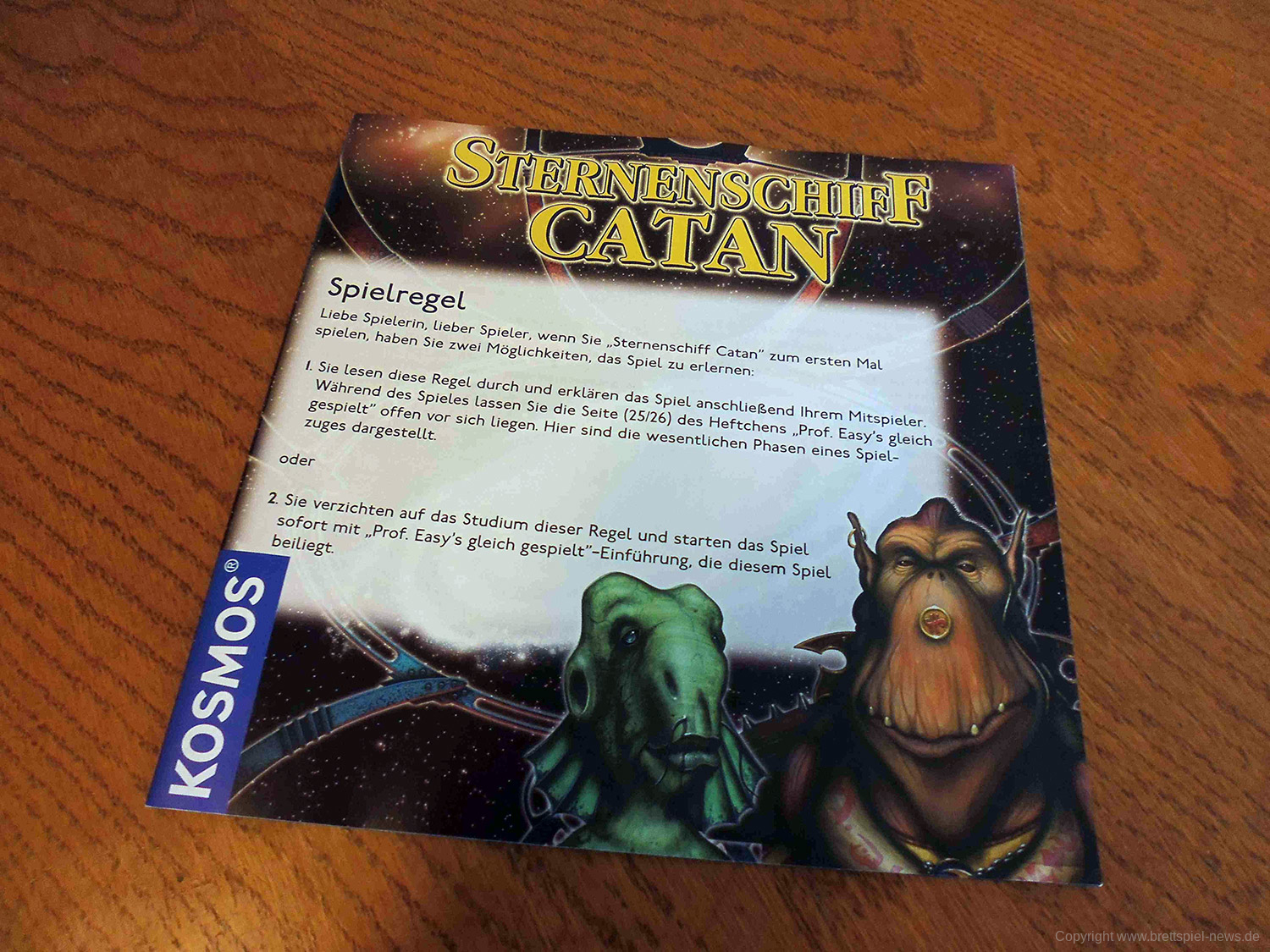 Lohnt sich nun also die beschwerliche Reise mit dem Sternenschiff oder nicht? Eine einfache Antwort kann ich darauf nicht geben. Also versuche ich es gar nicht erst und fange nochmal von vorne an. Lange Zeit wusste ich gar nichts von der Existenz des Spiels und kannte lediglich die „Sternfahrer von Catan“. Entsprechend groß war die Freude, als die Schachtel sogar noch in Originalverpackung vor mir stand. Das Spielmaterial muss sich trotz seines Alters nicht vor neueren Releases verstecken. Vor allem die Illustrationen entführen einen mit ihrer Mischung aus düsteren Grundfarben und knalligen Akzenten sofort in die vertraute Welt der Science Ficiton-Abendteuer. Lediglich die Antriebe und Bordkanonen sind wenig gelungen, da sie nicht so recht in die Steckplätze passen und daher schneller kaputt gehen können. Der Spieleinstieg hingegen ist durch die Einführungspartie mit Prof. Easy wieder sehr gut umgesetzt, auch wenn Vielspieler aufgrund der hervorragend geschriebenen Anleitung darauf verzichten können. Akademiker neigen schließlich manchmal zu längeren Ausschweifungen, wenn ihr versteht, was ich meine.