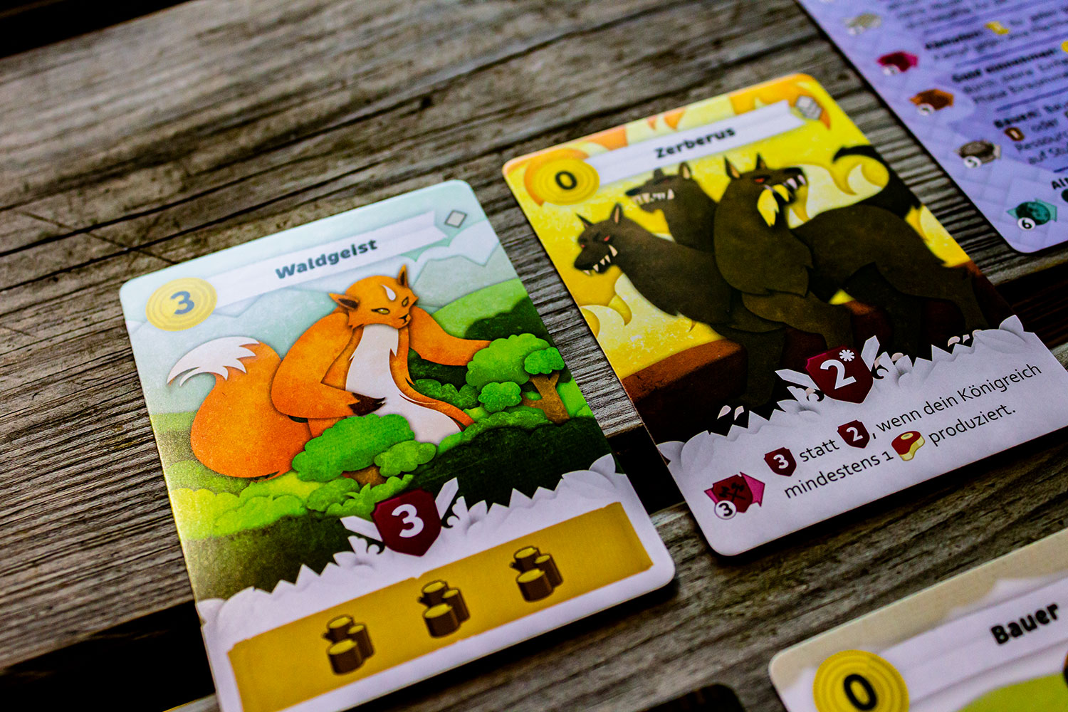 Ich mag Kartenspiele grundsätzlich und bin immer wieder positiv überrascht, wenn Spiele aus Karten etwas gänzlich Neues auf den Tisch zaubern. Paper Tales schafft diese Hürde nicht ganz zu nehmen. Die Kombination ist zwar geschickt gewählt, doch bis auf das Altern der Karten (das mir noch nicht untergekommen war, aber nicht bedeutet, dass es nicht schon woanders eingesetzt wurde) gibt es viel Bekanntes in neuer Mischung. Das Draften zum Beginn der Runde und das gleichzeitige Agieren erinnert frappierend an 7 Wonders. Auch das Bauen der Karten mit eigenen Rohstoffen und das Kämpfen mit den Nachbarn.