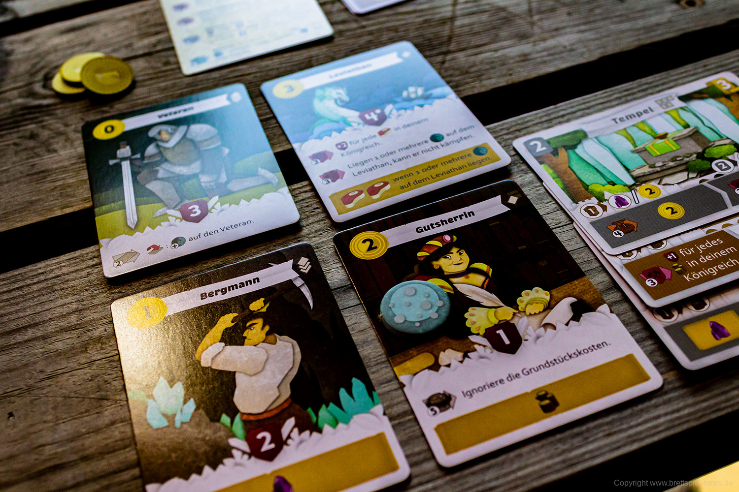 Trotzdem macht die Mixtur auch genügend eigenständige Schritte, denn vor allem liegt der Fokus auf dem Bilden einer gescheiten Auslage. Es muss entschieden werden, ob mehr auf Kampf gesetzt wird und teure Einheiten eingekauft werden, oder ob das Gold nicht doch besser in den Ausbau investiert wird. Oder es wird versucht ein Mittelweg zu gehen. Das alles muss dann noch in das verfügbare Budget passen, denn teure Karten, die nicht genutzt werden sind absolut wertlos.