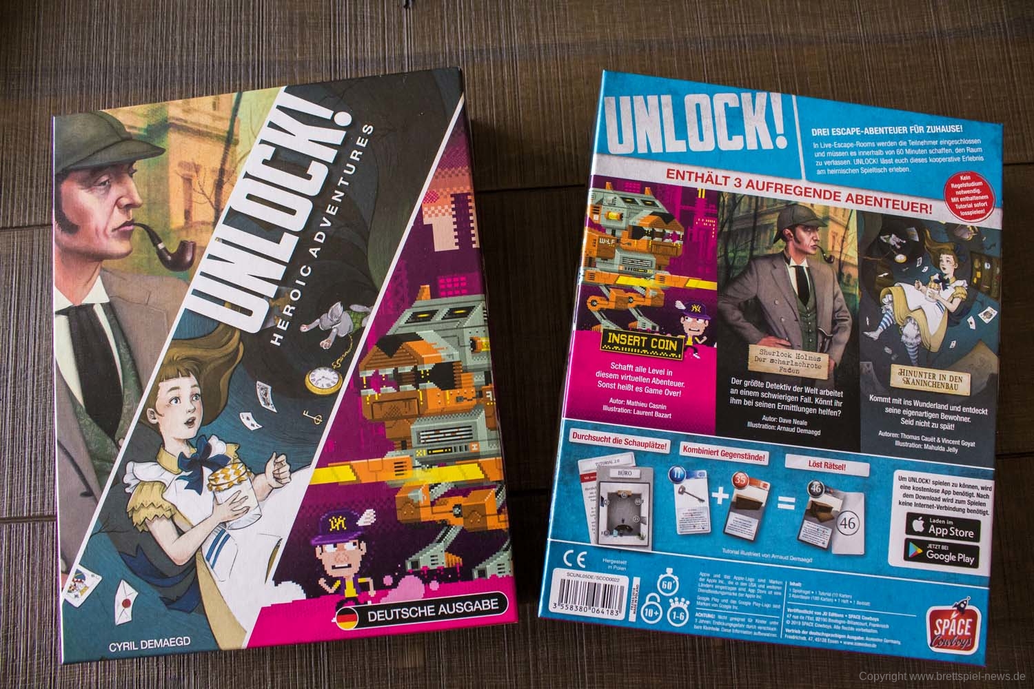 Meine Frau und ich sind große Anhänger der UNLOCK!-Reihe und wir freuen uns über jedes neue Set, das von Asmodee in den Handel gebracht wird. Überwiegend wissen die Abenteuer zu überzeugen und nur vereinzelt wollten die Rätsel nicht zünden oder erschienen die Lösungen ein bisschen zu weit an den Haaren herbeigezogen. Doch es ist klar, dass mit jedem neuen Spiel die Erwartungen immer höher steigen, denn es wird etwas Frisches erwartet und nicht nur ein Aufguss bereits abgestandener Thematiken und Mechaniken. Die große Frage war also: „Kann UNLOCK! HEROIC ADVENTURES hier liefern oder macht sich Enttäuschung am Spieltisch breit?“.