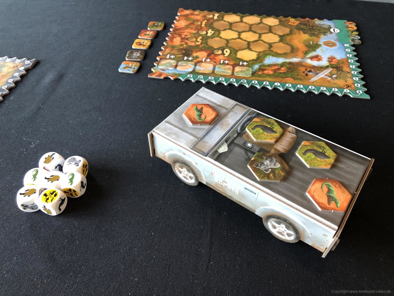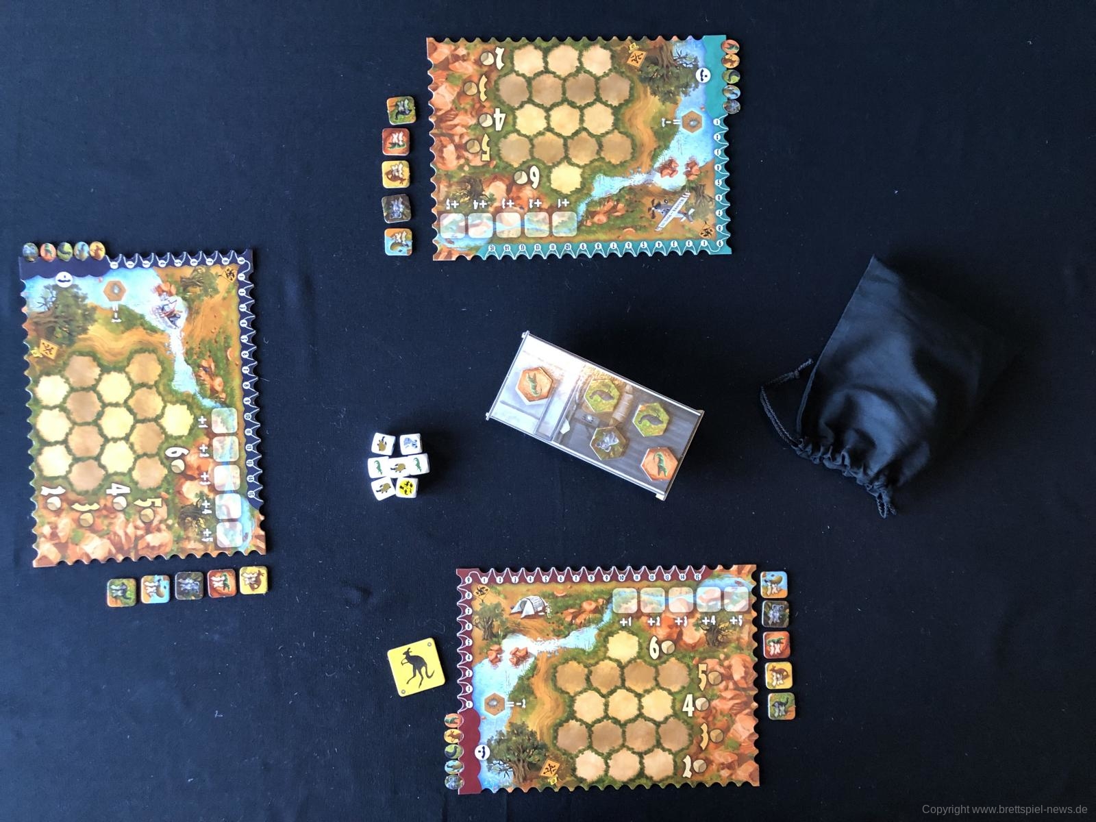 Gut gefallen hat mir die etwas andersartige Punkteleiste. Manchmal ist das Nehmen eines Tierplättchens etwas vorschnell, wodurch diese Tierart am Spielende dann Minuspunkte einbringt. Durch diesen kleinen Kniff birgt das Spiel eine Lernkurve. Bereits in der zweiten Partie wird die Auswahl der Plättchen übergelegter.