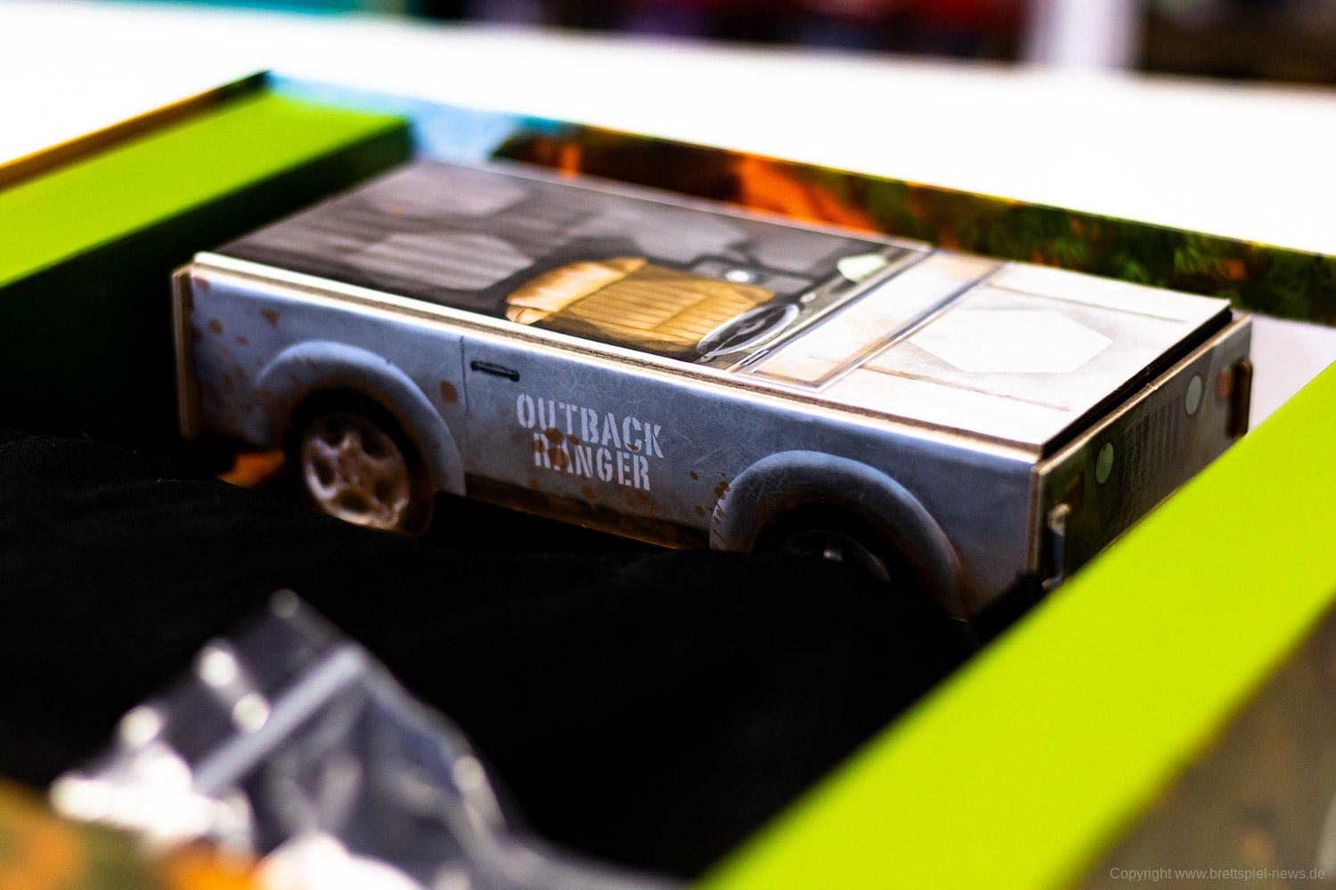 Das Spielmaterial ist, bis auf einen Kritikpunkt, sehr gut. Feste, stabile Tableaus, ein 3-D Jeep aus Pappe, der Stoffbeutel und die Qualität der Plättchen überzeugen. Lediglich die winzigen Punkteplättchen verrutschen gerne mal aus den Punkteleisten. Diese Tokens sind sehr minimalistisch ausgefallen.