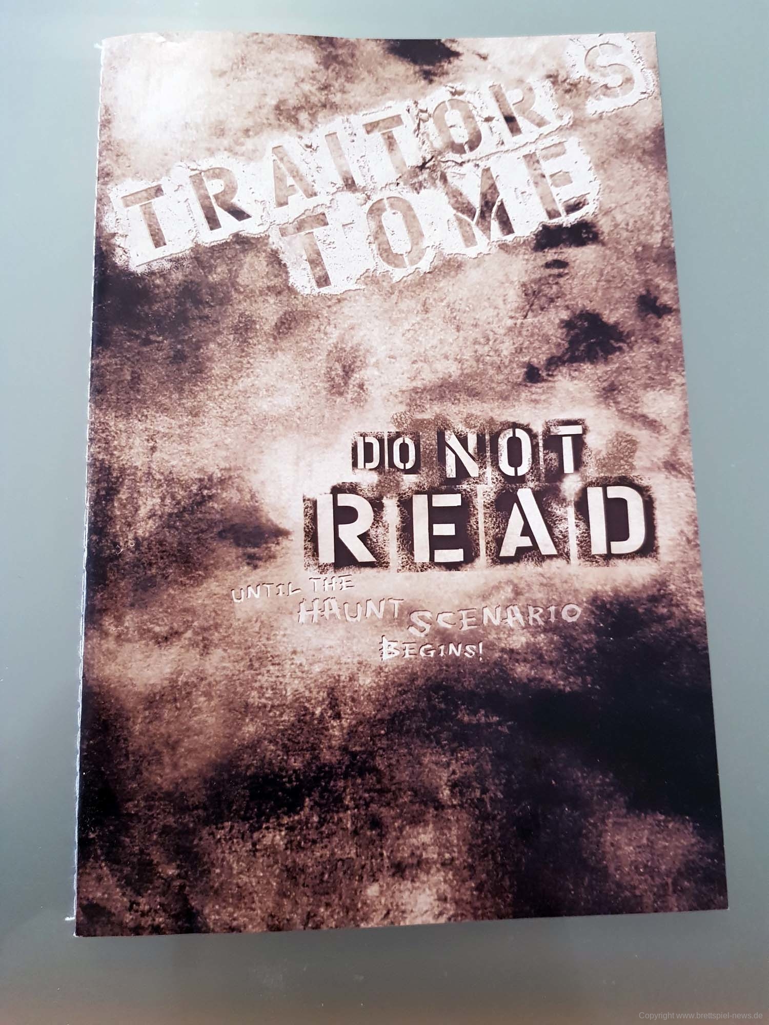 Nun schlägt man nämlich im „Buch der Verräter“ nach: Die Kombination des letzten Omens mit dem Raum, in dem es gefunden wurde, ergibt nämlich, welches Szenario nun gespielt wird. Und davon gibt es gleich 50 Stück, die sich sehr unterschiedlich spielen. Einmal öffnet sich ein Schlund zur Hölle und alle Spieler müssen versuchen, so schnell wie möglich das Haus zu verlassen. Ein anderes Mal wird ein Spieler von einem mörderischen Geist besessen und versucht nun, den anderen Spielern an den Kragen zu gehen. Zusätzliche Spannung kommt auf, weil ein Spieler - oft der, der den Plottwist („Haunt“) ausgelöst hat - und die restlichen Spieler unterschiedliche Informationen bekommen: Der eine liest (geheim, in einem anderen Zimmer) im „Buch der Verräter“, während der Rest gemeinsam das gleiche Szenario im „Buch der Überlebenden“ nachschlägt. Dabei wird den Spielern nicht immer alles genau verraten, aber man weiß nachher, was man erreichen möchte und welche Möglichkeiten einem dafür zur Verfügung stehen. Die Siegbedingungen variieren dabei von Seite zu Seite und von Szenario zu Szenario. Mit 50 verschiedenen Szenarien, die sich oft für beide Seiten sehr unterschiedlich spielen, ist also mehr als genug Wiederspielwert vorhanden.