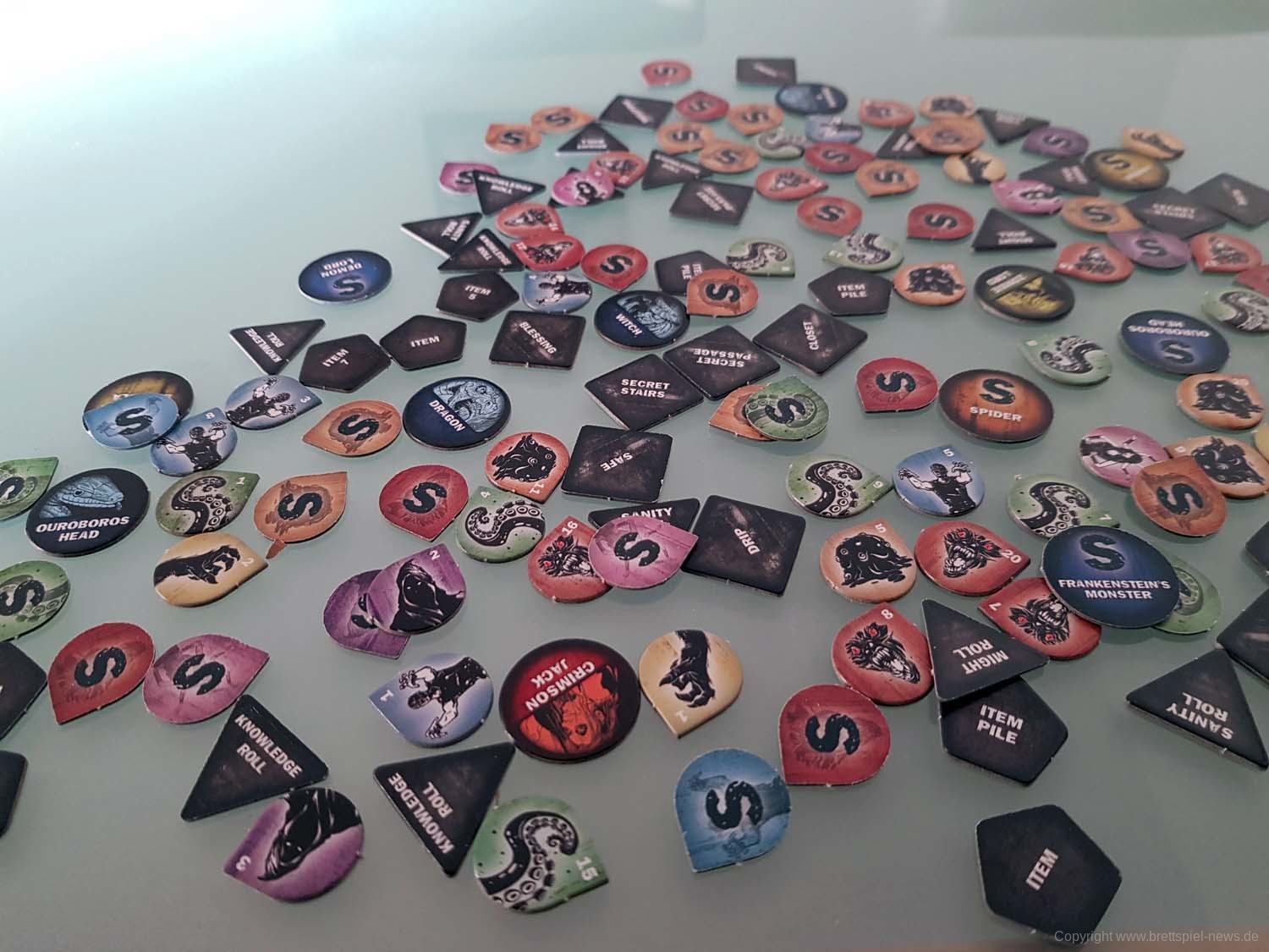 Sehr unübersichtlich fand ich allerdings die große Zahl an unterschiedlichen Pappmarkern: 149 Stück sind es. Leider sind sie nicht einfach zu unterschieden, glücklicherweise kommen sie aber auch nicht immer zum Einsatz. Dennoch: Hier wäre weniger vielleicht mehr gewesen, dafür dann aber mit einem übersichtlicheren Design.