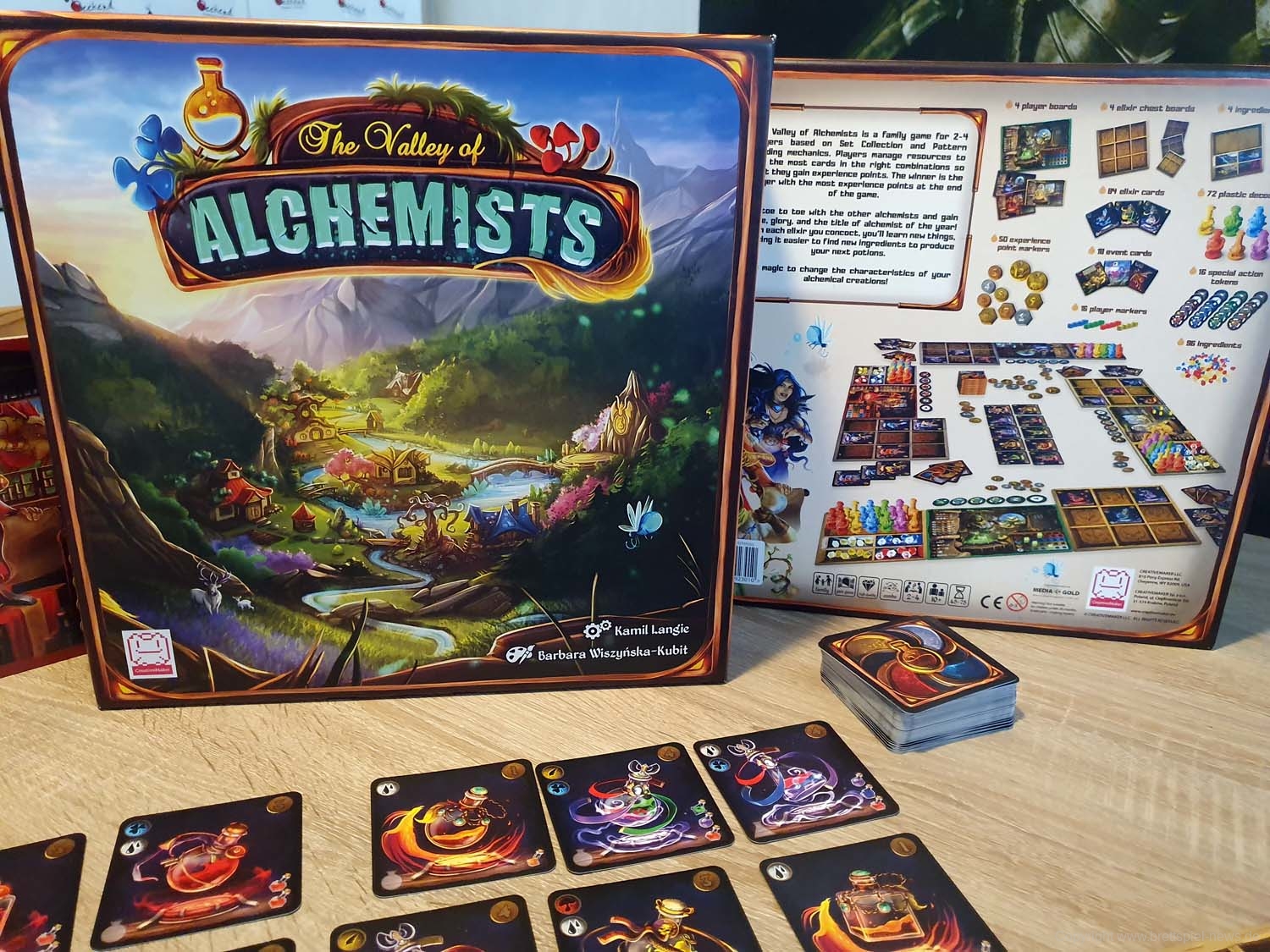 Um herauszufinden, ob dieses Rennen um den Titel „Bester Alchemist aller Zeiten“ etwas taugt, liegt uns zum Test eine private „The Valley of Alchemists“-Kopie vor, die es nun erstmal genauer zu begutachten gilt. Hinweis: Bei der getesteten Version handelt es sich um die Kickstarter-Variante. Es ist somit möglich, dass sich die Qualität des Spielmaterials und der Inhalt bei einer möglichen Verlagsveröffentlichung von dieser Variante unterscheidet!