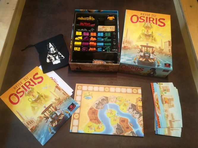 REISE ZU OSIRIS ist ein Worker-Placement-Spiel auf Kenner-Niveau, bei dem der Handel unter den Spielern ein wichtiger Aspekt des Spiels ist. Es richtet sich an 2-5 SpielerInnen, dauert ca. 40-60 Minuten und wird ab 12+ Jahren empfohlen. Als Statthalter ist es die Aufgabe der SpielerInnen, Monumente entlang des Nils zu bauen und so Ruhmespunkte zu generieren. Denn am Ende kann es nur einen bzw. unter gewissen Bedingungen mehrere neue Pharaonen geben.