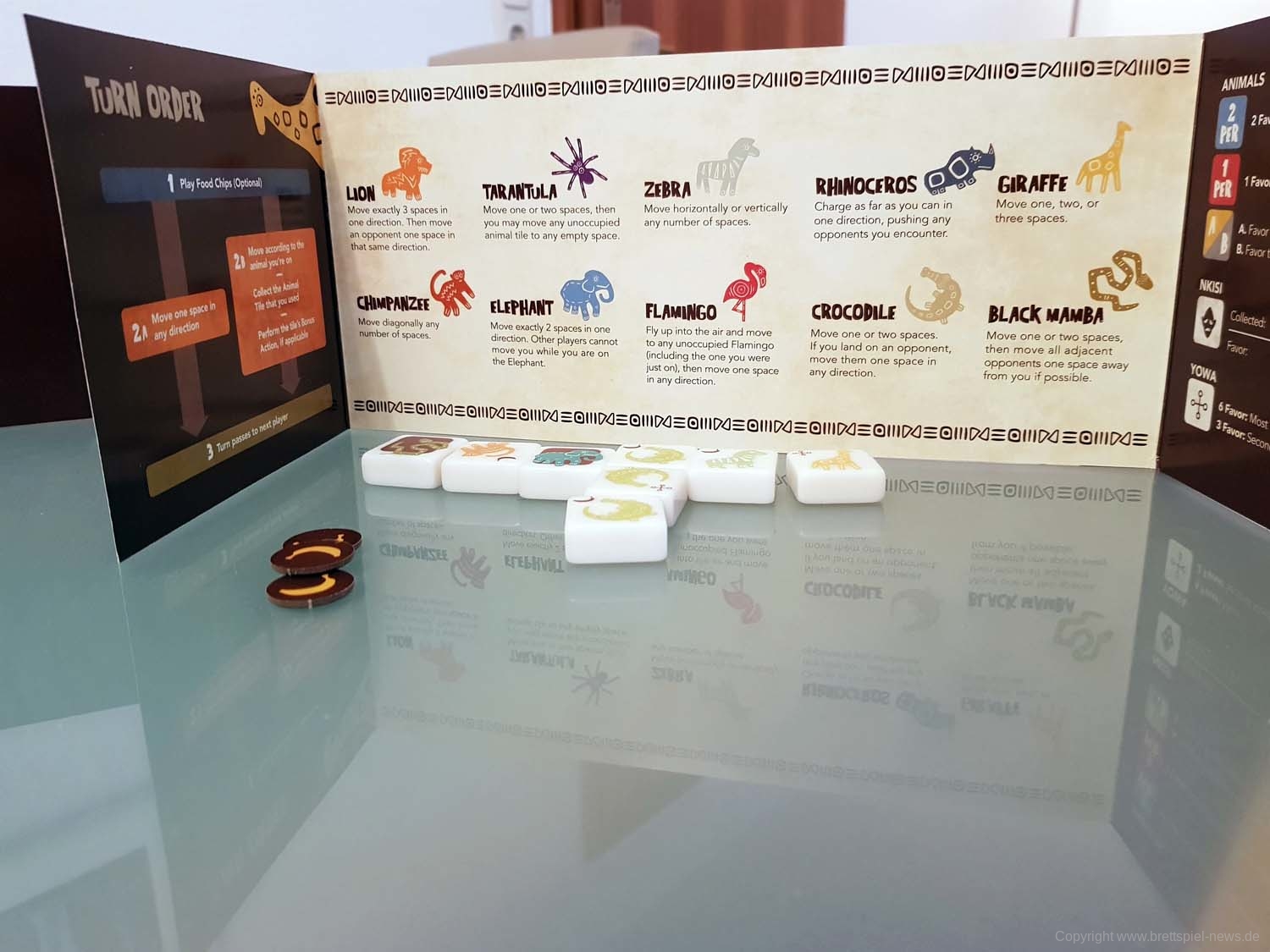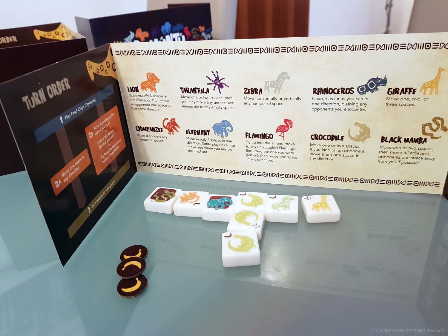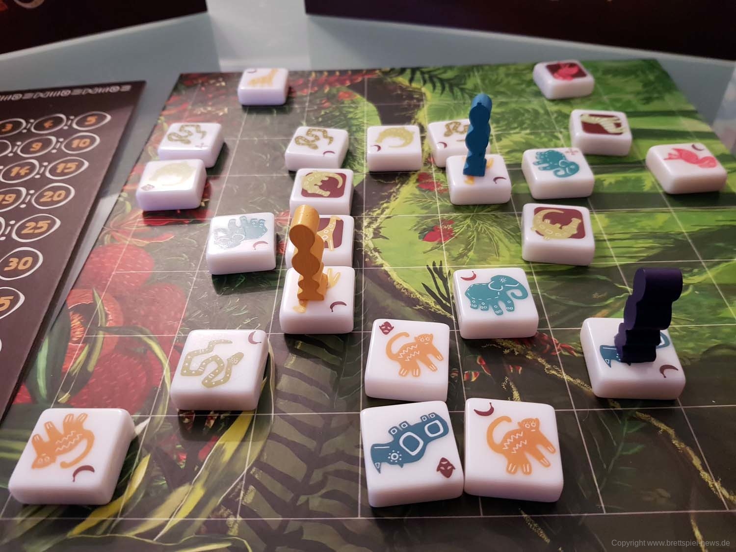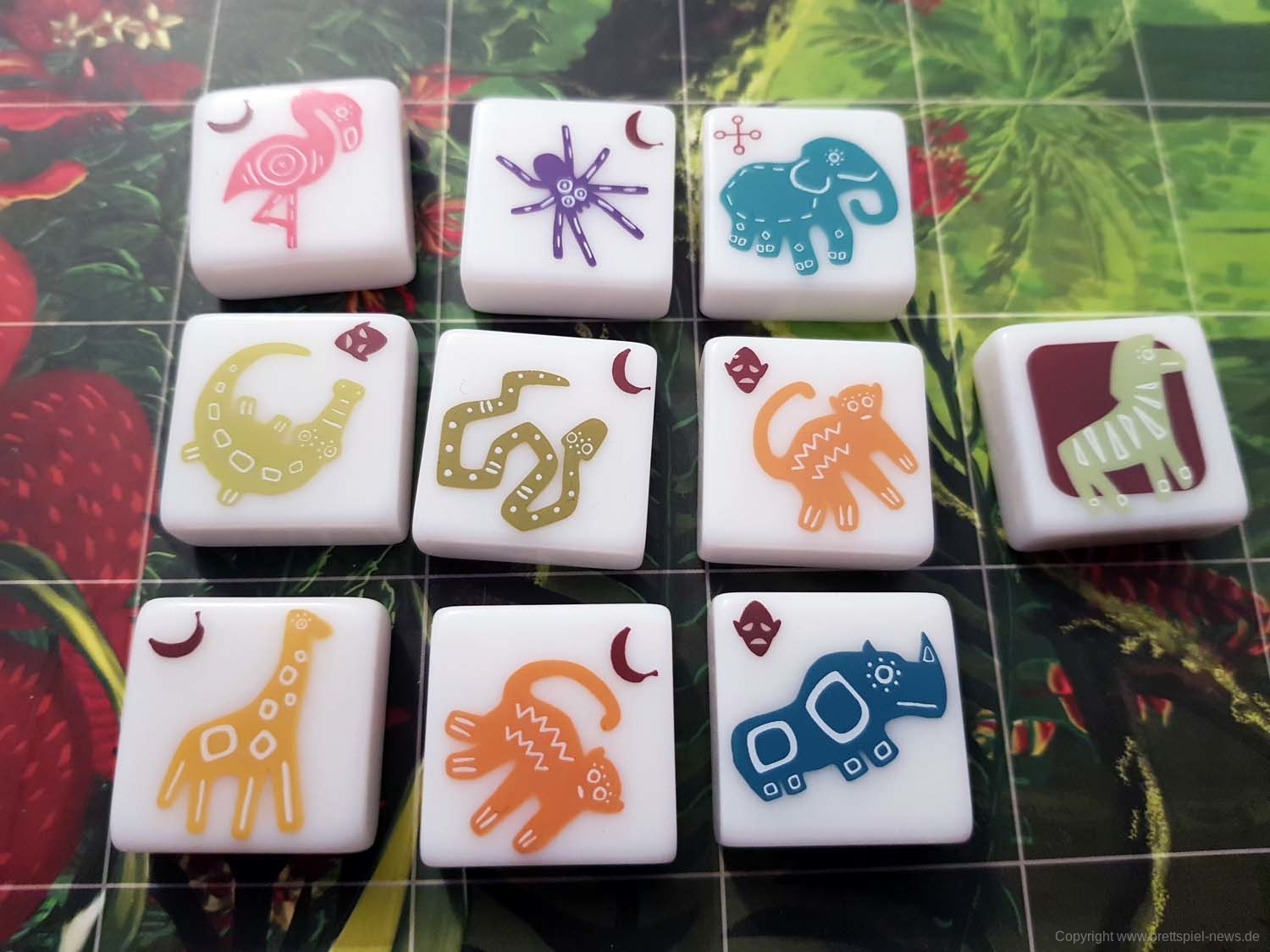 Die Vielzahl an möglichen Spielzügen bietet allerdings auch die Gefahr der Analyse-Paralyse. In der Zwischenzeit können sich die Mitspieler aber an den tollen Illustrationen und der genialen Haptik der Acrylsteine erfreuen. Das Spielmaterial wertet diesen sehr flexiblen Titel noch einmal auf. Ich hoffe, dass Pegasus die deutsche Version genauso hochwertig produziert. Ich habe sowohl mit Brettspiel-Neulingen als auch mit Vielspielern unterschiedlichster Altersgruppen sehr gute Erfahrungen mit BUMÚNTÚ gesammelt und kann nur empfehlen, einfach einmal einen Blick in den afrikanischen Dschungel zu wagen.