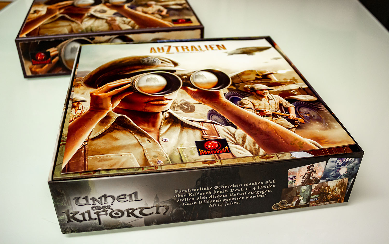 Wer kennt das nicht? Ihr versucht, im australischen Outback der 1930er Jahre ein funktionierendes Schienennetz zu errichten und euch auf euren Farmen ein schönes Leben zu machen, als wieder einmal Cthulhu und seine Truppen eure Arbeit zerstören wollen. Wenn euch diese Situation unbekannt vorkommt, könnt ihr das jetzt bei „AUZTRALIEN“ nachholen! Bei „AUZTRALIEN“ versucht ihr, euch mit Taktik und Strategie gegen andere Mitspieler und Cthulhu selbst durchzusetzen. Das Ziel? Überleben… und Ruhm und Ehre natürlich!