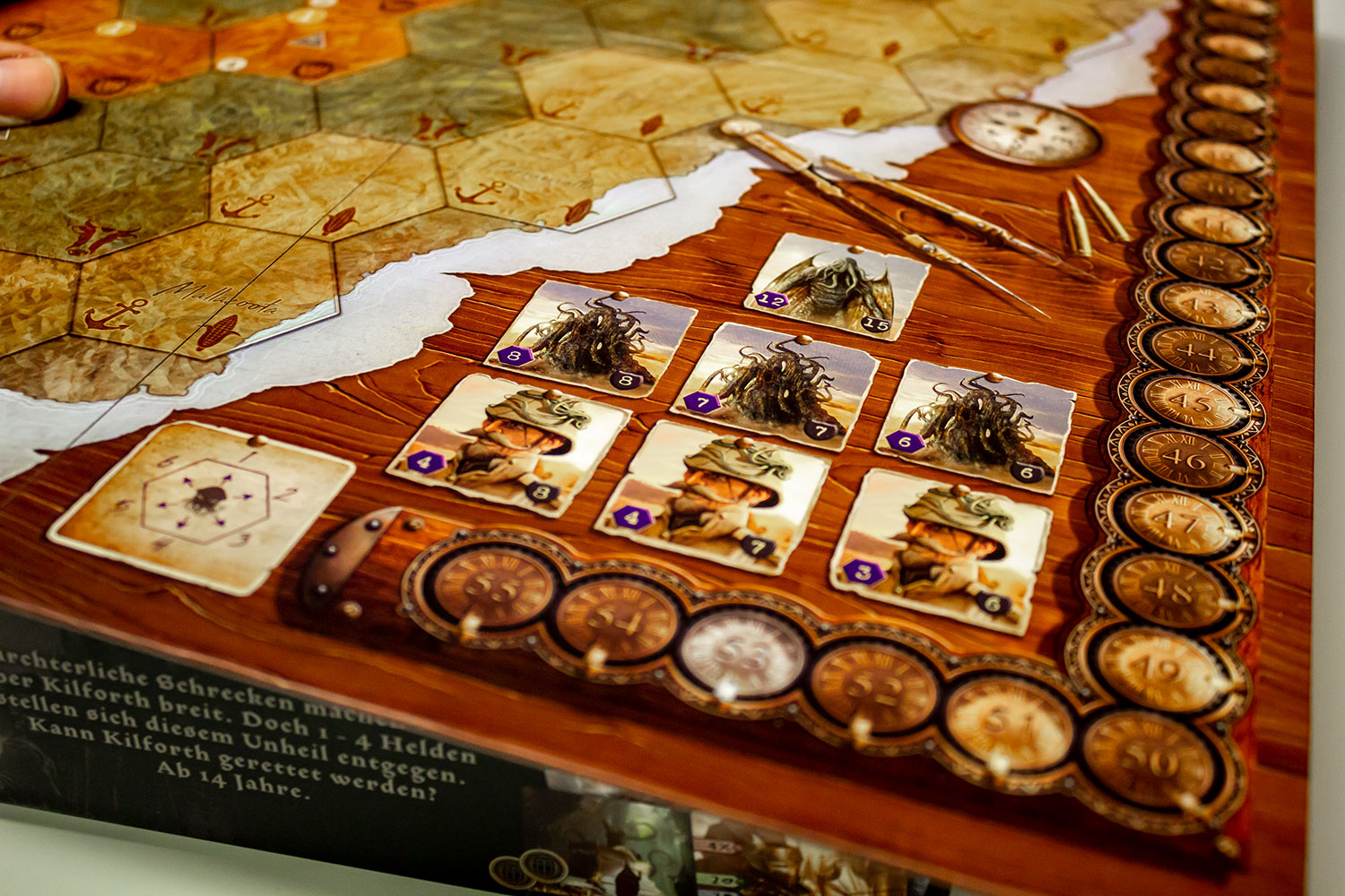 Der Einzelspieler- und der Zweispielermodus bieten die Wahl, Missionen zu spielen oder Cthulhu und dem eventuellen Mitspieler ohne eine gezielte Aufgabe entgegenzutreten. Für besonders herausfordernde Spiele bieten die Regeln 4 verschiedene Schwierigkeitsgrade, die erneut durch bestimmte Missionen erschwert werden können. Nach oben ist da alles offen. Bei allen Modi, außer dem Einzelspieler, lässt sich das Spiel außerdem auch kooperativ spielen! Zum Schluss lässt sich dann auch noch eines von zwei Spielfeldern wählen, die einen sehr großen Einfluss auf den Spielverlauf haben. Mehrere Runden „AUZTRALIEN“ an einem Abend könnten sich außerdem als schwierig erweisen, da eine Runde gut und gerne mal 2-3 Stunden dauern kann.