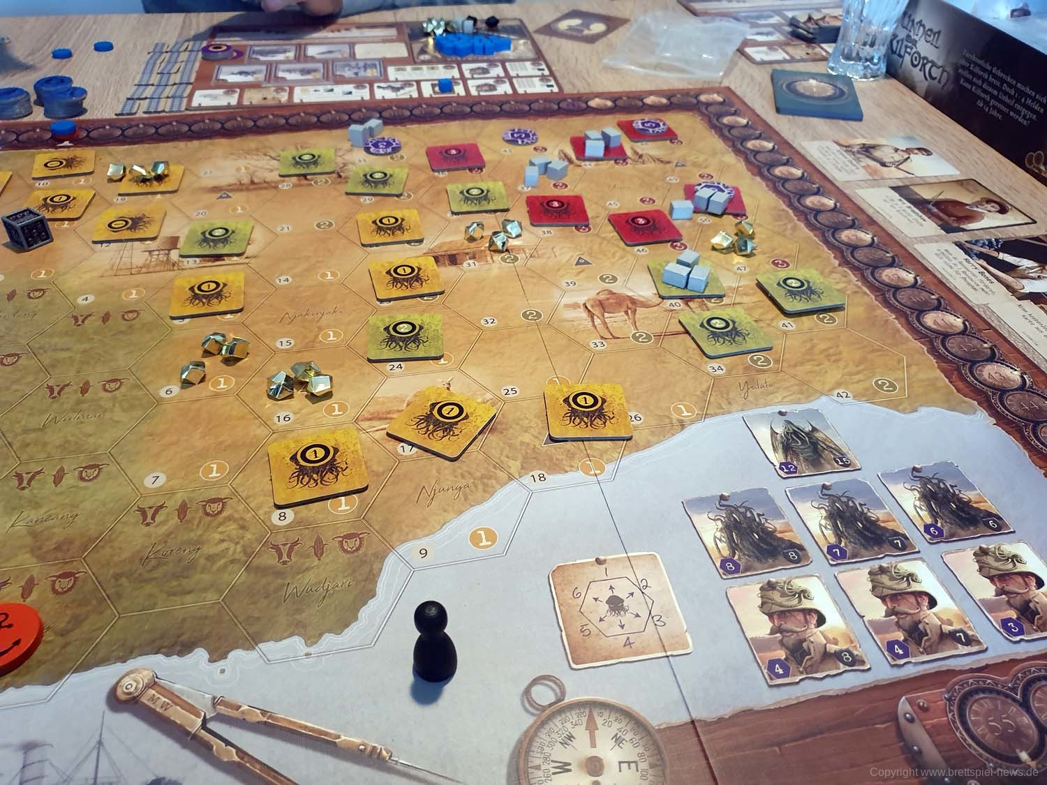 Die Frage, die sich mir außerdem beim Spiel stellte, war, ob das Cthulhu-Thema dem Spiel wirklich etwas bringt. Die Antwort ist Nein. Aber es ist cool! Für mich als Cthulhu-„Fan“ verleiht das dem Spiel natürlich noch einen gewissen Pluspunkt, aber unterm Strich hätte auch jede andere nur denkbare Fraktion eingesetzt werden können.