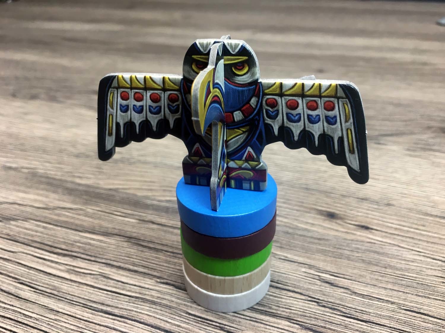 Allerdings hat diese Schönheit ihre Tücken: Der Adlerkopf, der die Spitze des Totempfahls bildet, wurde in all meinen Partien, nach wenigen Runden nicht mehr benutzt, da er durch die Rotation und Drehungen der Aktionsscheiben einfach jeden störte.