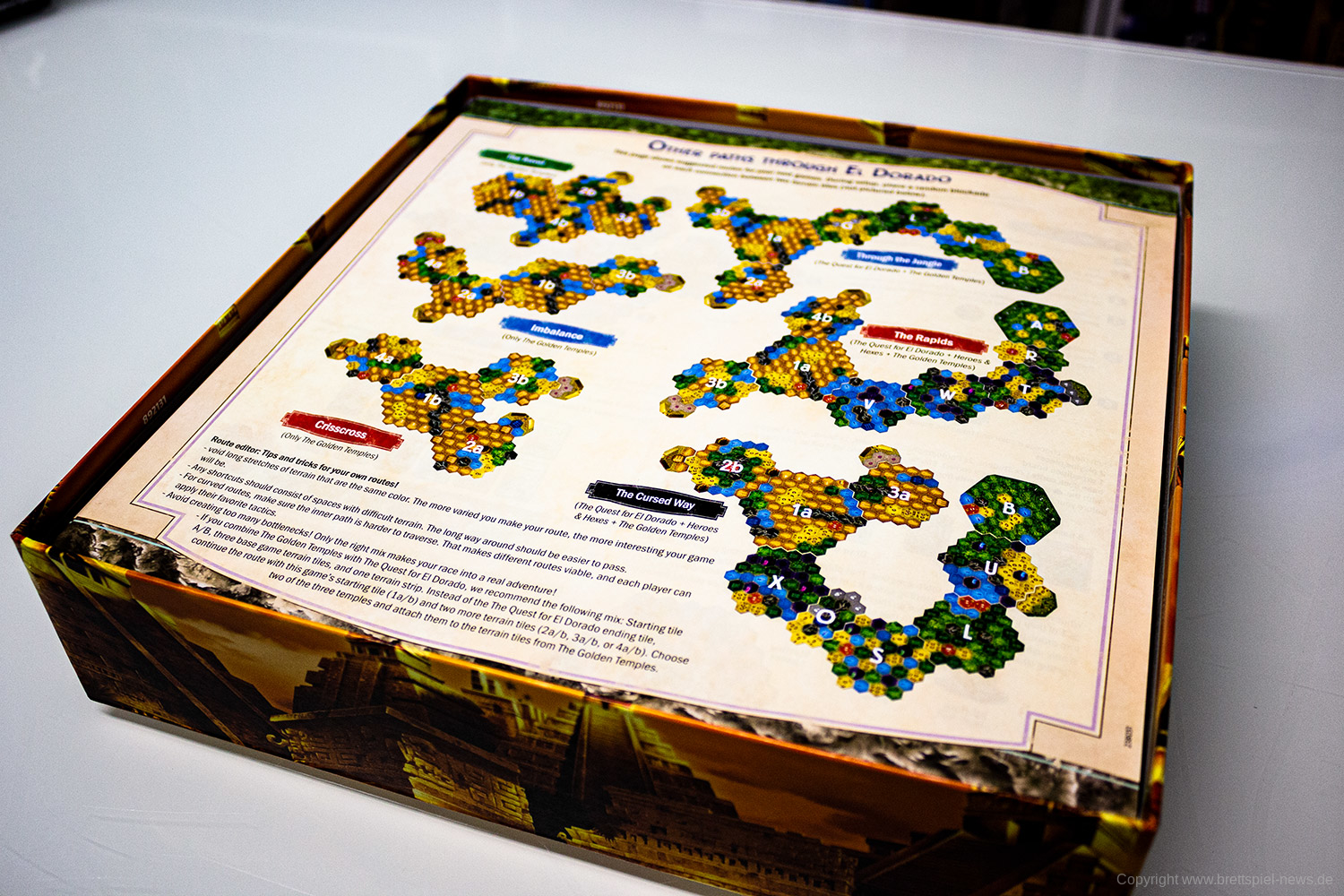 WETTLAUF NACH EL DORADO - DIE GOLDENEN TEMPEL ist die 2. Erweiterung zum 2017 erschienenen „WETTLAUF NACH EL DORADO“, welches seinerzeit zum Spiel des Jahres nominiert wurde. Diese Erweiterung ist mit dem Grundspiel kombinierbar oder auch einzeln spielbar.