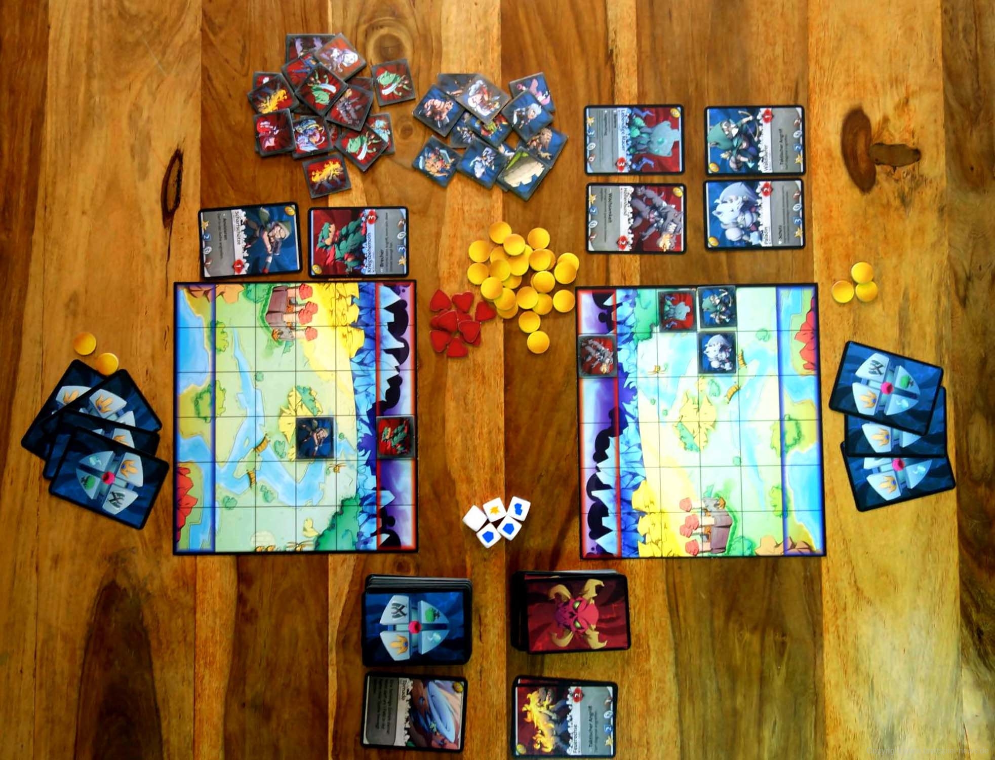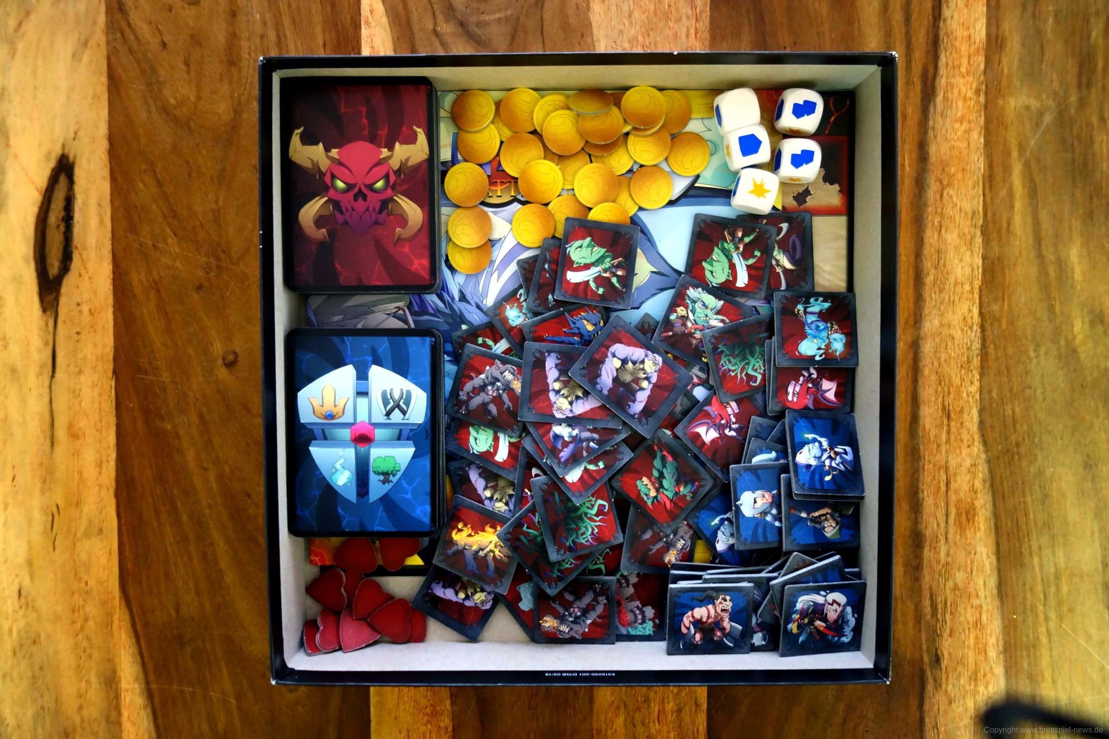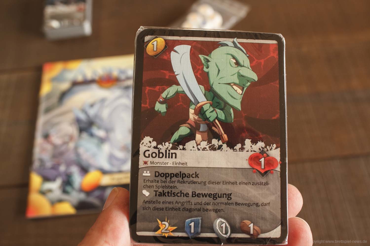 Gut gefallen hat uns, dass, obwohl auf separaten Schlachtfeldtableaus gespielt wird, die SpielerInnen stark untereinander interagieren, da immer auch die Monster des rechten Schlachtfeldes kontrolliert werden und somit immer auf zwei Tableaus gespielt wird. Das ist originell und motiviert.