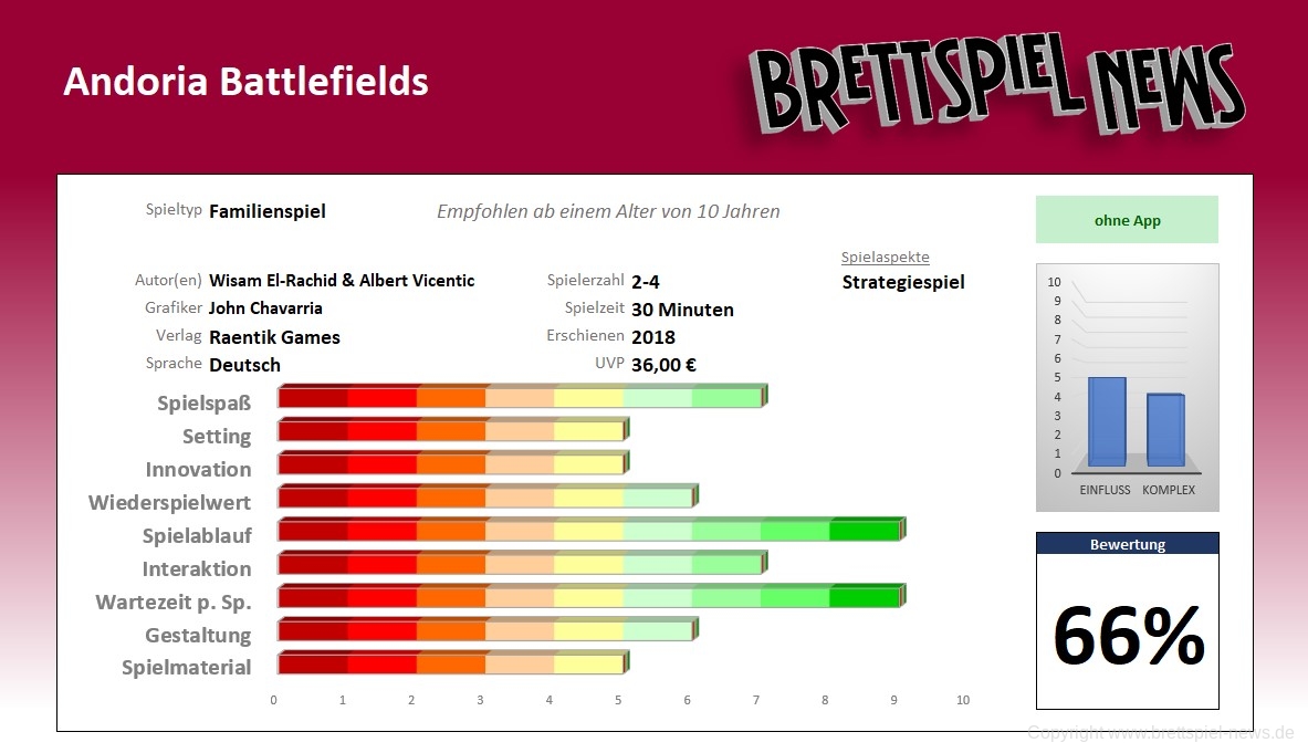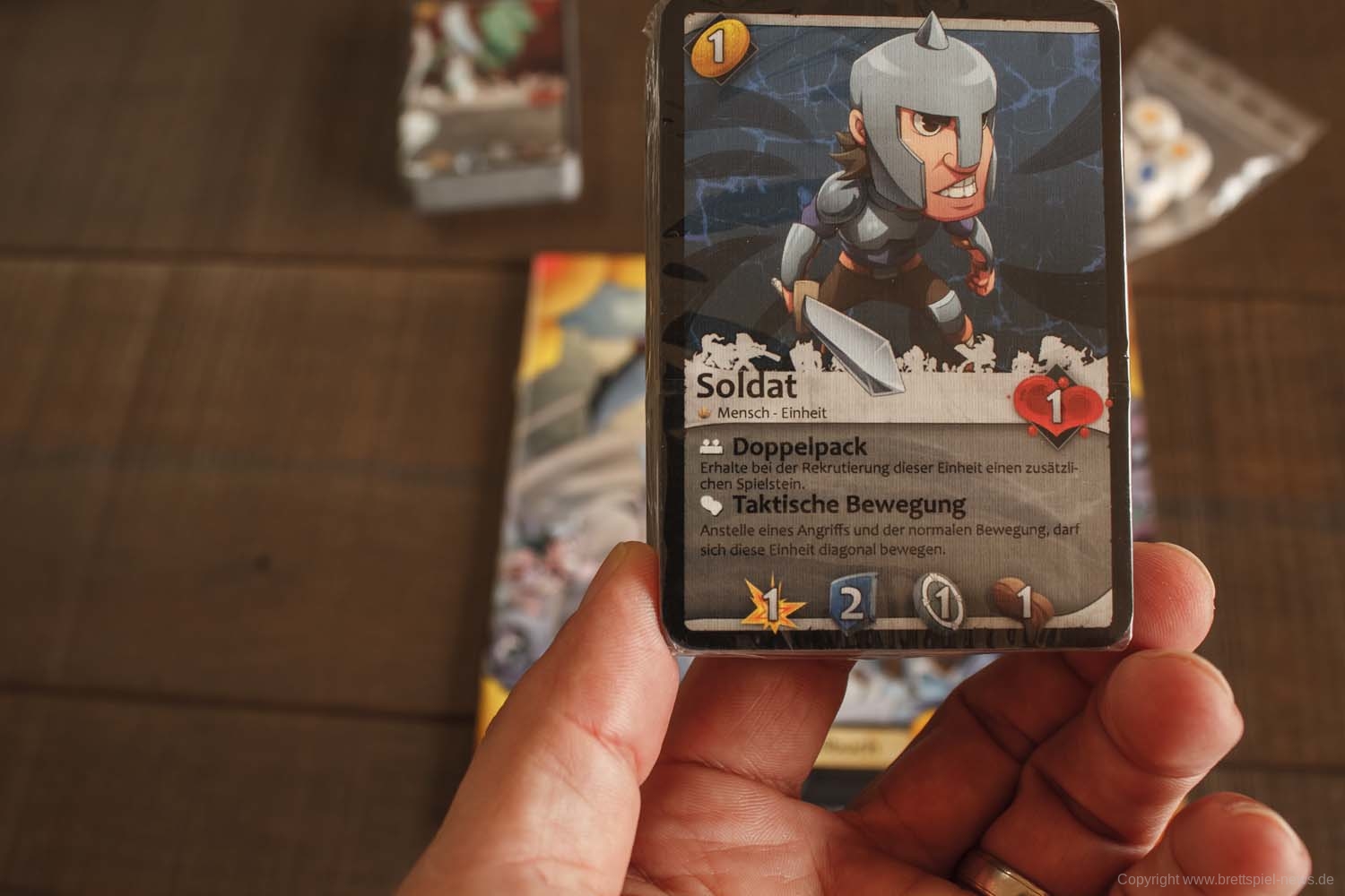 Die Spielzeit variiert allerdings auch durch den recht hohen Würfelglücksfaktor. Das Spiel ist sicherlich nichts für Personen, die sich sehr über Würfelpech ärgern können. Aber ANDORIA BATTLEFIELDS als Glücksspiel zu bezeichnen, würde dem Spiel sicherlich nicht gerecht. Durch die Vielzahl an Charakter und Möglichkeiten ist für ausreichend Abwechslung und Planung gesorgt. Wir empfanden die flotten Runden durchaus als unterhaltsam.