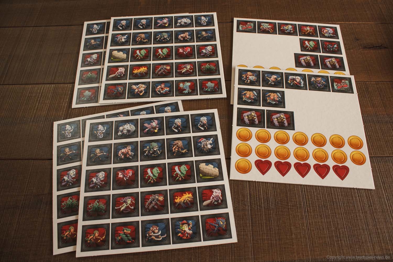 Die dazu gelieferte Hintergrundgeschichte geht nicht über Fantasy-Standard hinaus. Das möchten wir aber nicht negativ bewerten, da viele Spiele ganz ohne Geschichte auskommen müssen. Irritierend ist aber, dass vier Völker mit unterschiedlichen Stärken aufgeführt werden und dass diese vereint werden müssten, um die Monsterportale zu schließen, obwohl dies nicht ansatzweise im tatsächlichen Spiel umgesetzt wird. Portale sind keine zu sehen, es müssen auch keine Völker vereint werden und die Plättchen könnten zwar von aufmerksamen Zeitgenossen vielleicht den Völkern zugeordnet werden, aber das ist spielerisch unerheblich. Hier wurde Potential verschenkt, aber im Vergleich zu vielen anderen Spielen, wie gesagt, stellt dies sicherlich keinen großen Mangel dar.