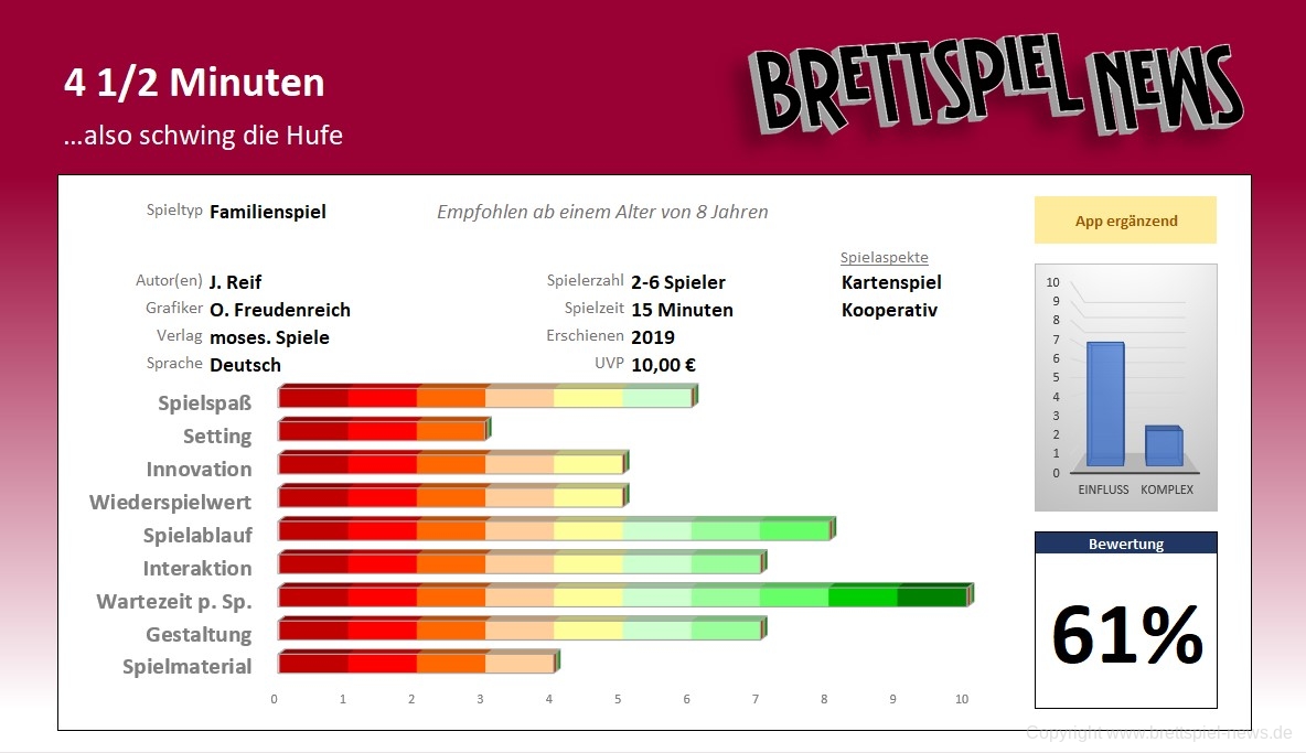 4 ½ MINUTEN wurde uns freundlicherweise von moses Spiele kostenlos zur Verfügung gestellt. Dies hatte keinerlei Einfluss auf unsere Bewertung.