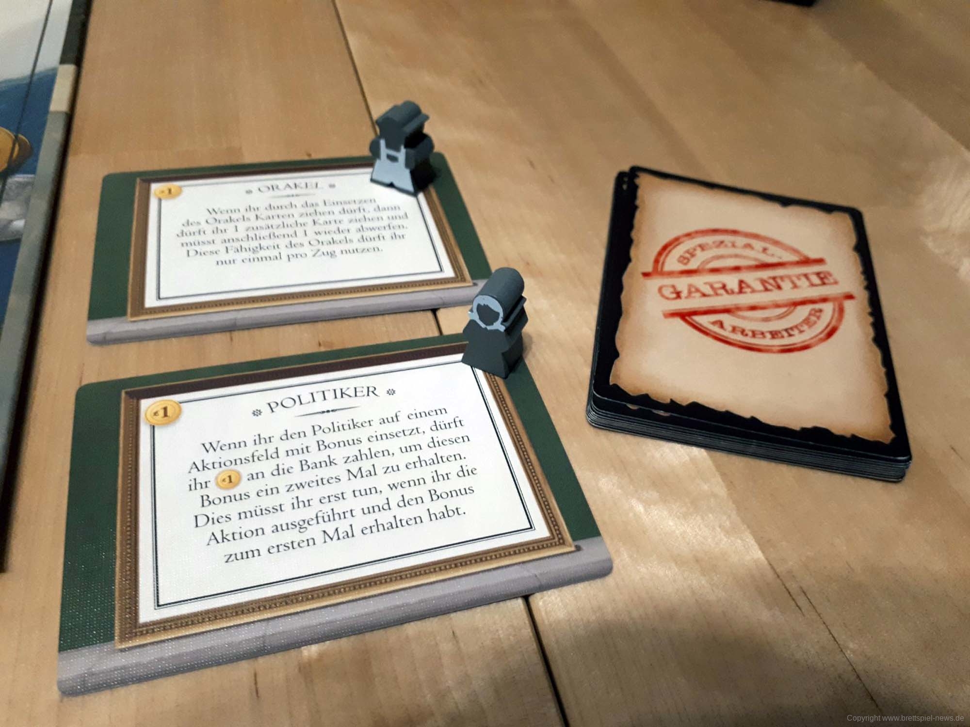 Das Modul der Spezialarbeiter fügt sich sehr schön in das Grundspiel ein. Die einzelnen Funktionen sind sehr vielseitig und da die elf Spezialarbeiter beliebig kombiniert werden können, wird der Wiederspielreiz noch einmal deutlich erhöht. Der Wiederspielreiz ist auch beim Modul „Bauwerke“ der größte Pluspunkt. Der große Stapel an unterschiedlichsten Bauwerken sorgt dafür, dass individuelle Strategien verfolgt werden und kein Spiel wie ein anderes verläuft.