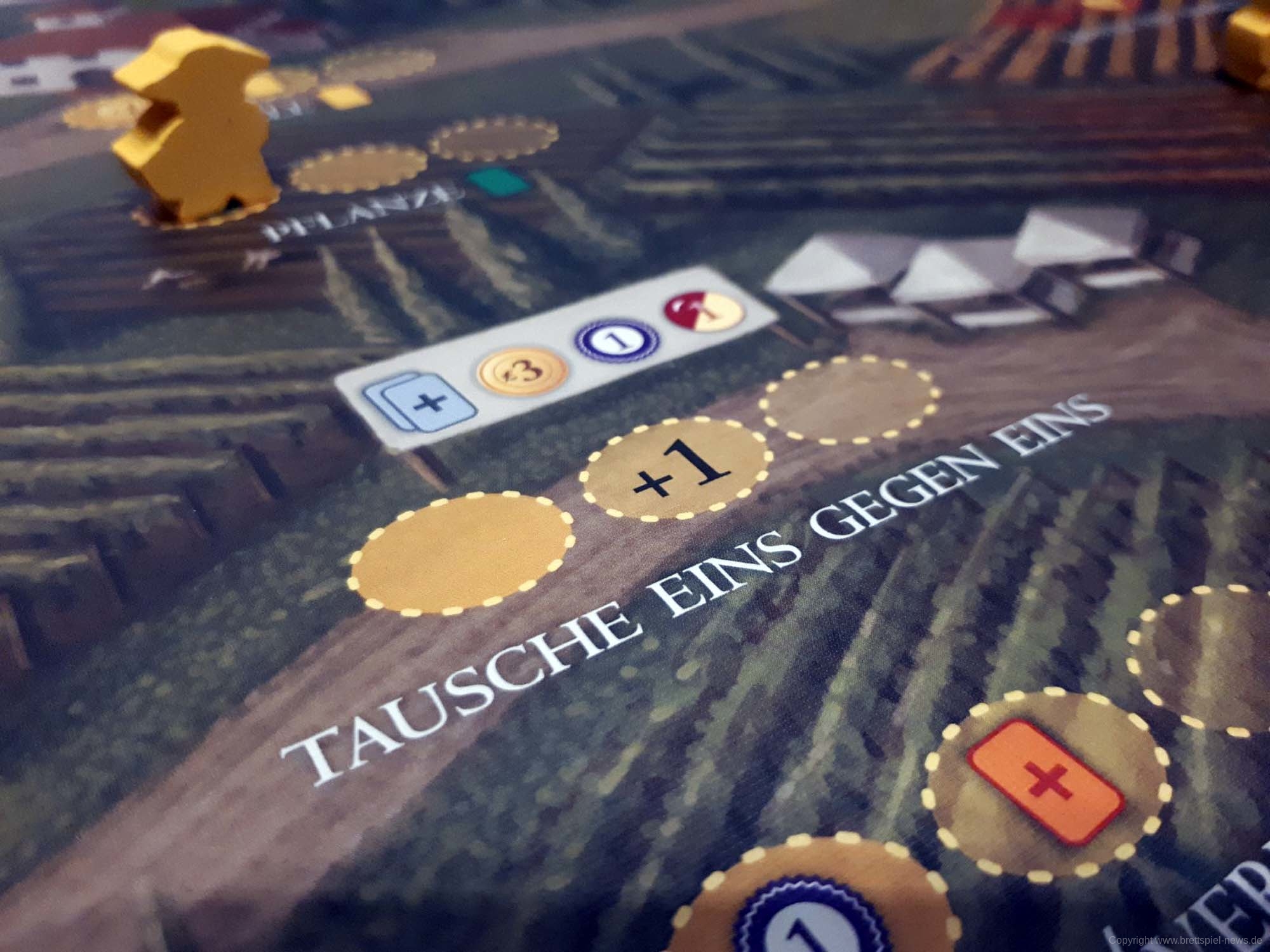 Schon das Grundspiel VITICULTURE ist ein spielmechanisch ausgesprochen rundes Spiel. Durch die TUSCANY Erweiterung erhält es meiner Meinung nach noch einen weiteren Feinschliff. Der neue Spielplan bringt neue Aktionen mit sich, die das gesamte Spiel aufwerten. Nun können SpielerInnen auch Ressourcen durchtauschen.