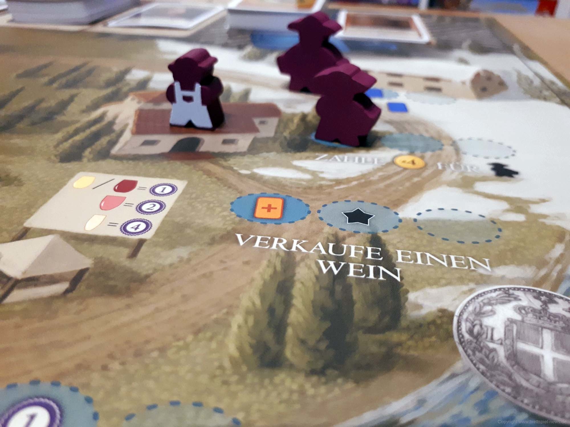 Wer also nur „falsche“ Karten gezogen hat, kann hier jetzt einfach unpassende Karten abgeben und nachziehen. Auch die Möglichkeit, Weine für Siegpunkte zu verkaufen, macht das Spiel belohnender. So geht ein teuer produzierter Sekt nicht unter, falls die SpielerIn keine passende Auftragskarte gezogen hat.
