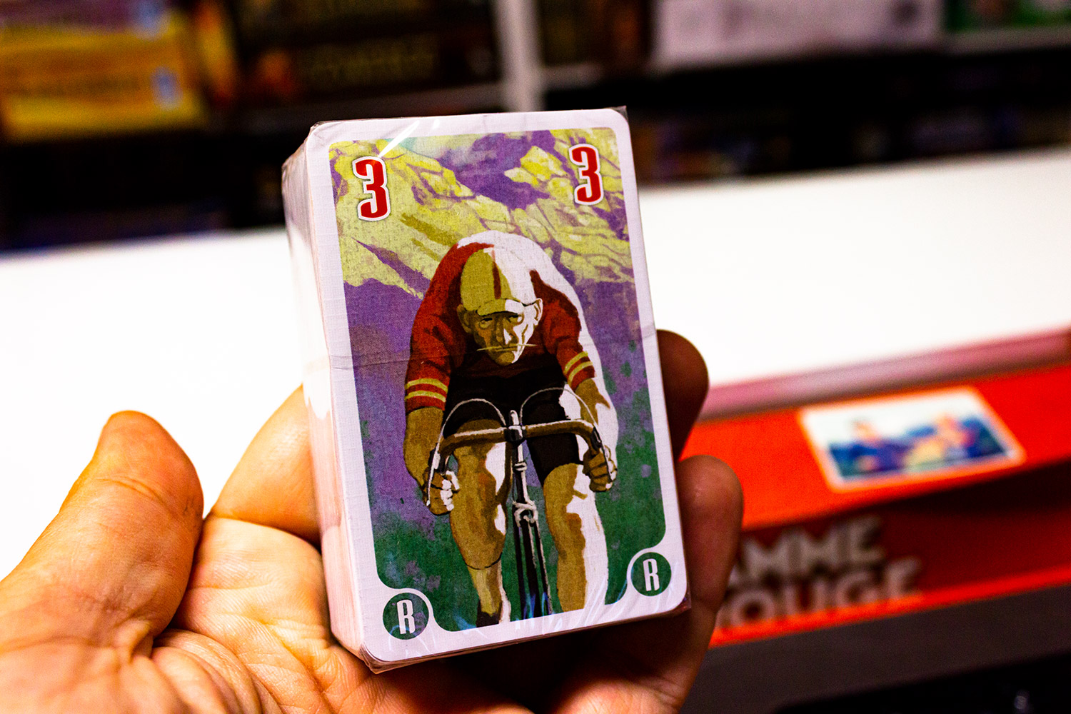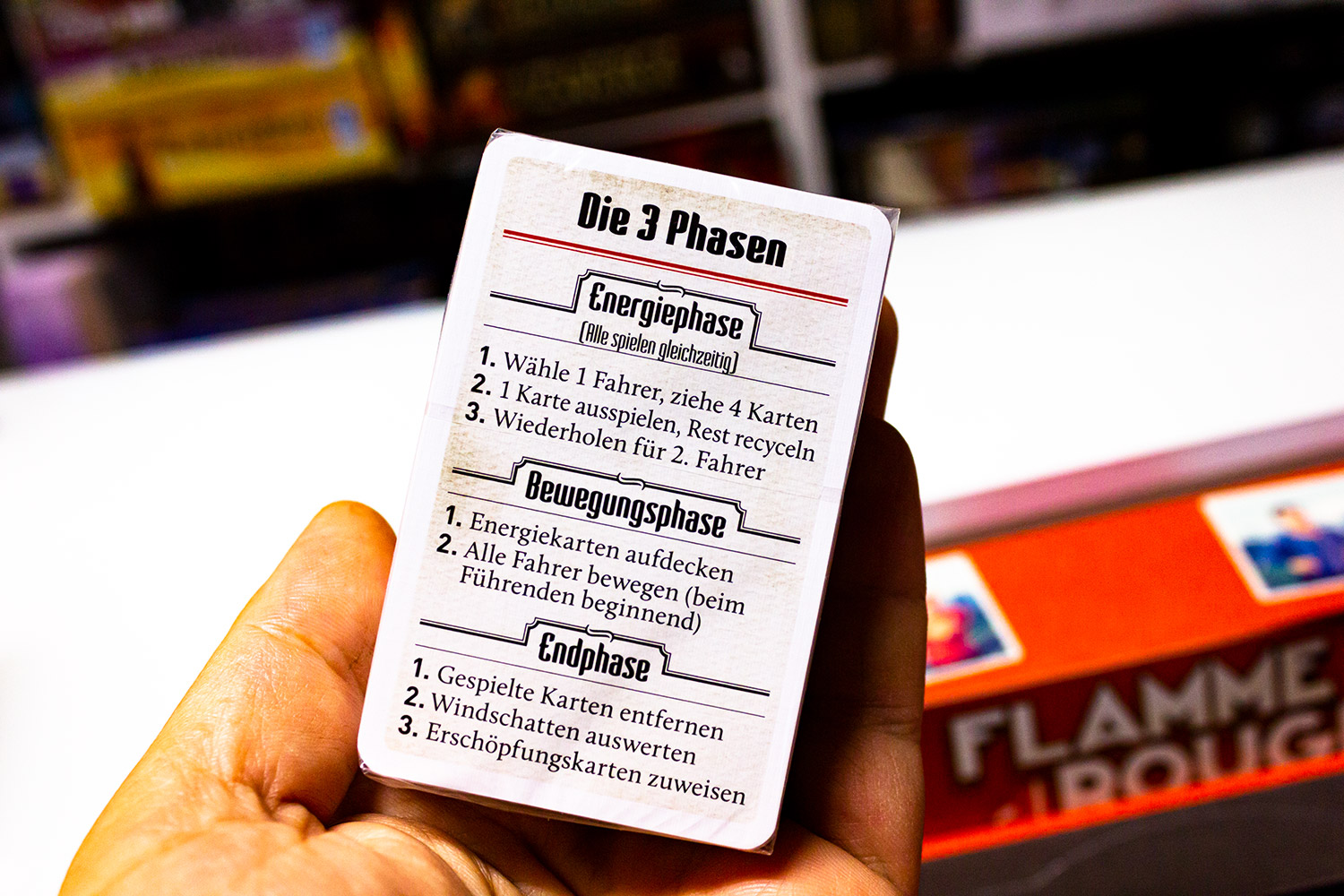 Bei einer Partie mit der Familie werden auch Vielspieler ihre Freude an FLAMME ROUGE haben, da gerade die Regel mit den Erschöpfungskarten gepaart mit der stetigen Kartenverknappung einem doch ein gewisses Maß an Vorausplanung abverlangt. Das reicht aber meiner Meinung nach nicht aus, um es unter gleichgesinnten Vielspielern auf den Tisch zu bringen. Trotz des variablen Aufbaus ist der Spielverlauf bei FLAMME ROUGE für diese Zielgruppe nämlich bereits nach wenigen Partien doch etwas zu monoton und zu wenig fordernd, um langfristig zu fesseln. Auch als Absacker eignet es sich nur bedingt, da es dafür zu lange dauert und mir persönlich auch etwas die Action fehlt. Zumindest ersteres hätte man vielleicht geschafft, wenn man Sprinteur und Rouleur gänzlich anders spielen müsste. Dieses Potential wurde allerdings verspielt, weil die beiden Decks letztlich so ähnlich sind, dass ich hier in meinen Partien kaum Unterschiede ausgemacht habe. Auch die Wahl, von welchem der beiden Kartenstapel die Spieler in der Energiephase ziehen, empfand ich fast immer als beliebig und irrelevant für den Ausgang einer Runde.
