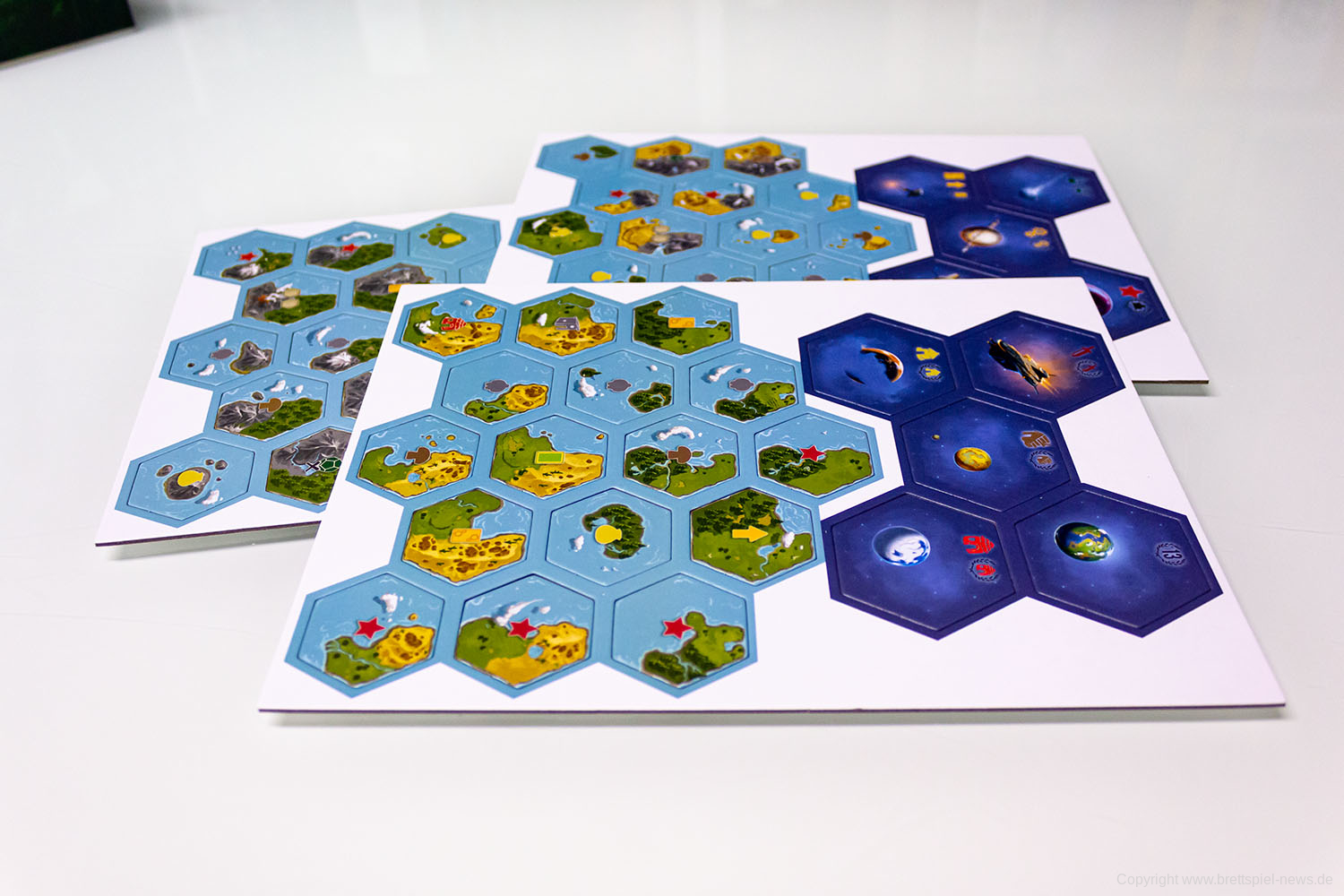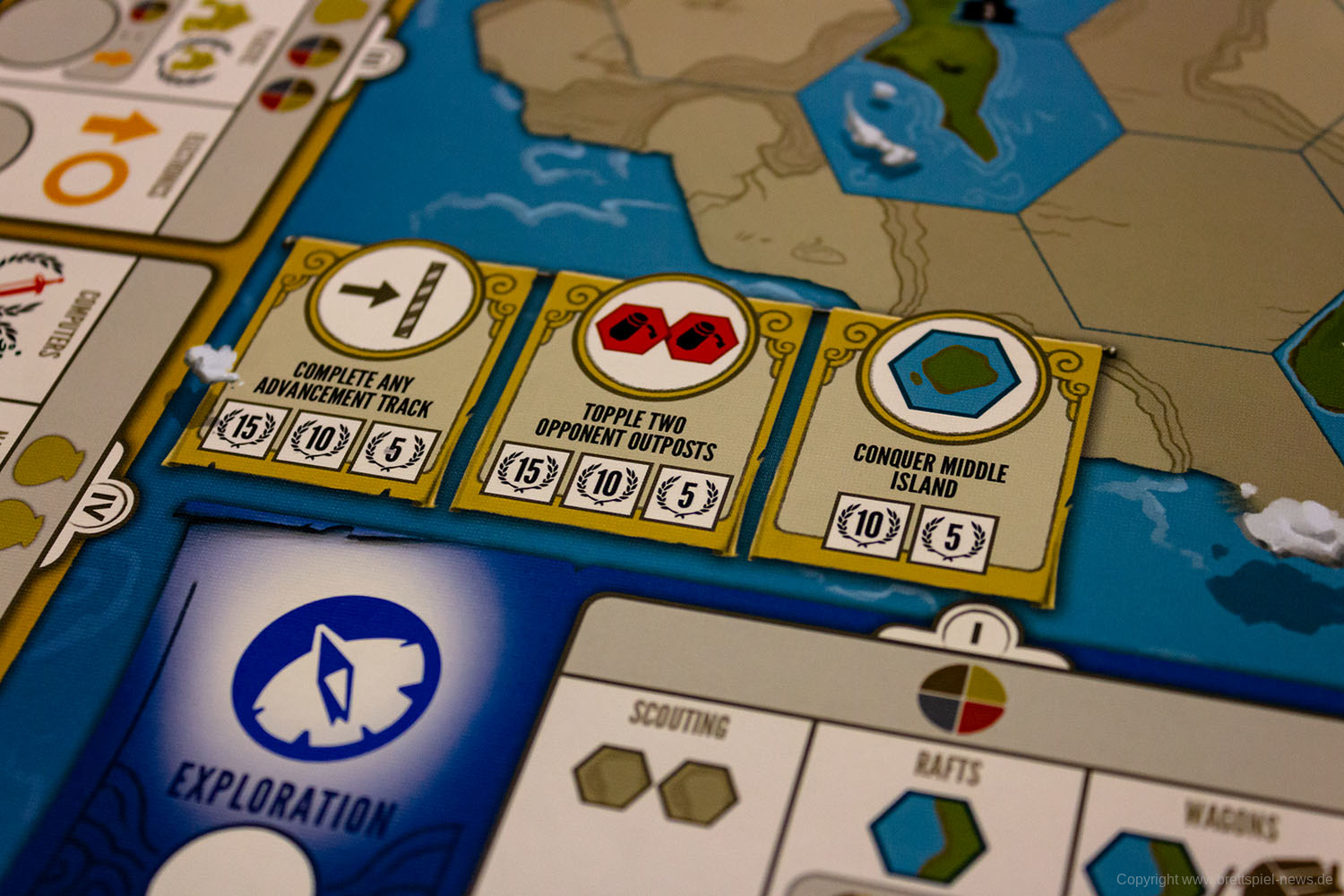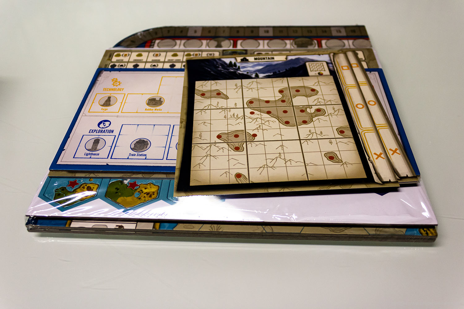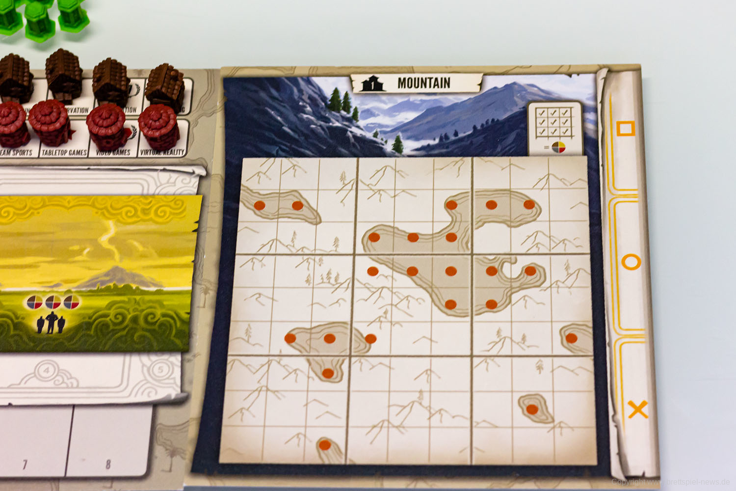 Dass es thematisch nicht passt, kann ich so akzeptieren, da die Mechanik an sich wunderbar funktioniert. Es ist für mich immer wieder eine Freude, neue Strategien zu erproben. Ob ich beispielsweise eine Kombination der gelben mit der grüner Leiste ausprobiere oder doch lieber eine der blauen mit der roten. Setze ich erst einmal eine Leiste bis zur 12. Errungenschaft hoch oder doch besser zwei Leisten im Gleichschritt? Soll ich mich auf die Techkarten konzentrieren oder erobere ich lieber die Welt? Die Handlungsmöglichkeiten an sich sind gut überschaubar, ohne dabei jedoch an Reiz zu verlieren. Dadurch sind schnelle Runden möglich, in denen sich die Downtime in Grenzen hält. Selbst bei Mitspielern, die sich schnell in einer Analyse-Paralyse befinden, dürfte sich das Grübeln am Ende in Maßen halten. Und am Ende gibt es immer wieder die Momente, in denen versucht wird, die fehlende Ressource noch irgendwie zu beschaffen, indem kreativ einzelne Funktionen genutzt werden.
