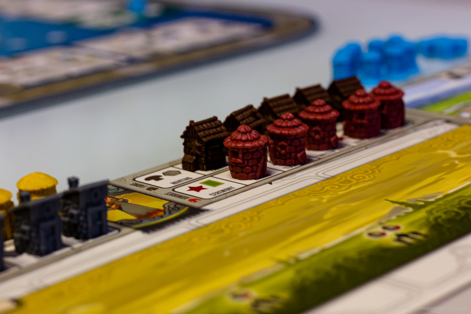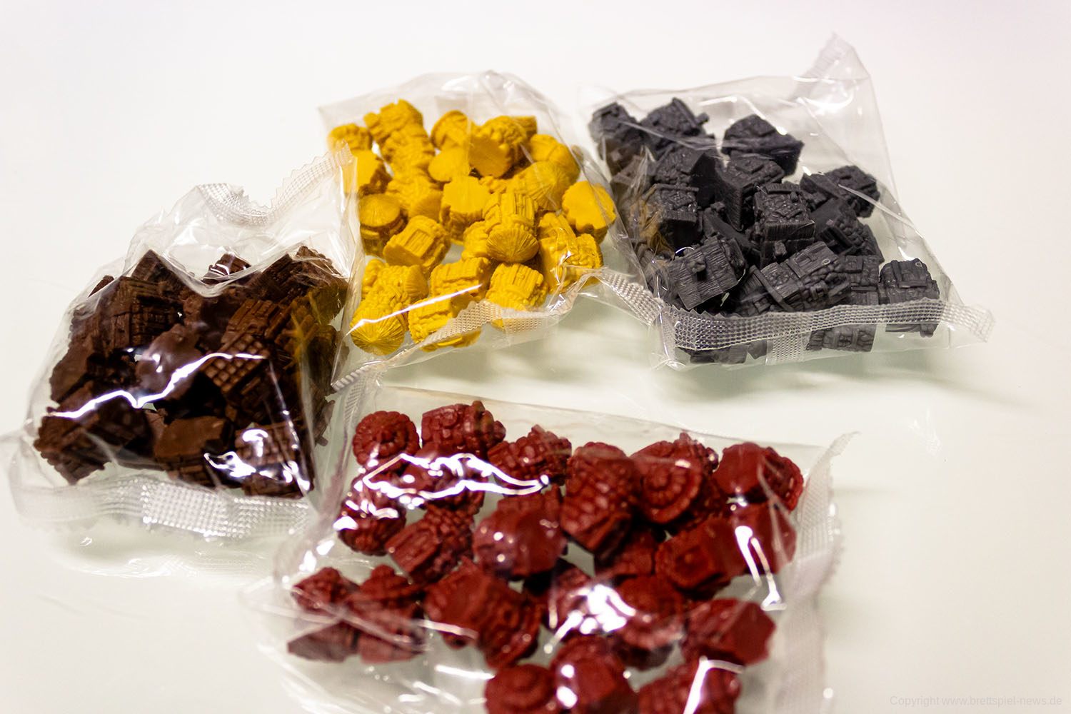 Das Ressourcenmanagement mit den 4 zur Verfügung stehenden Rohstoffen endet nicht im Mikromanagement, sondern bewegt sich in einem eher groben Rahmen. Gerade deswegen macht es mir besonders große Freude, noch nach einer Möglichkeit zu suchen, um die letzte noch benötigte Ressourcenart zu erhalten, damit die letzte Stufe einer Errungenschaftsleiste doch noch im letzten Zug erreicht werden kann. Die schnellen Züge, die direkten Belohnungen, die mein Belohnungssystem ungemein triggern, und die insgesamt recht flüssig und schnell gespielten Runden sorgen bei mir für einen großen Wohlfühlfaktor am Tisch. Ich sehe zwar all die genannten (und kleineren ungenannten) Probleme dabei, fühle mich aber trotzdem bestens unterhalten.