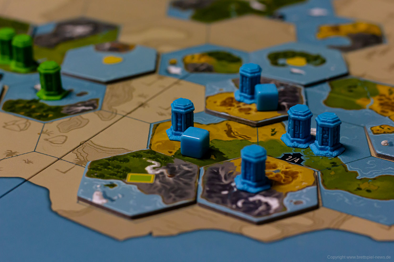 Die Balancing-Probleme haben wir für uns dadurch gelöst, dass wir für unser Empfinden viel zu starke bzw. zu schwache Zivilisationen aussortiert haben und nur noch mit rund der Hälfte der Zivilisationen spielen. Das schränkt die Auswahl zwar etwas ein, lässt aber immer noch genügend Abwechslung zu, ohne die Chancengleichheit zu sehr zum Glücksspiel zu machen. Bislang fahren wir gut mit dieser Lösung, die für weitaus weniger Frust als die gesamte Palette der Zivilisationen sorgt.