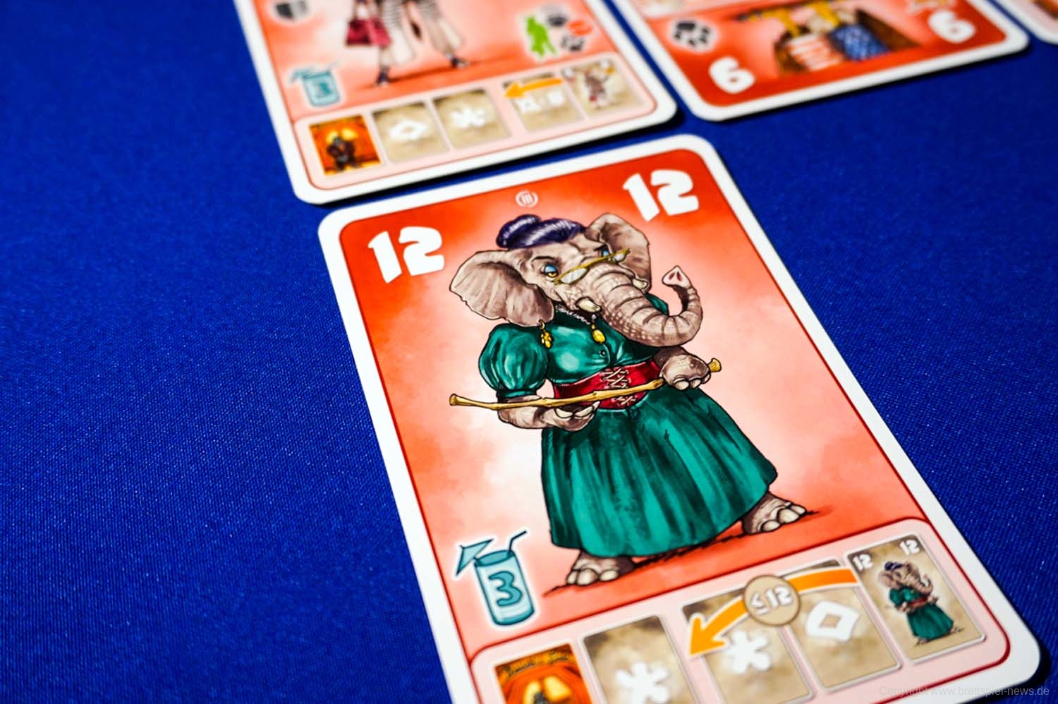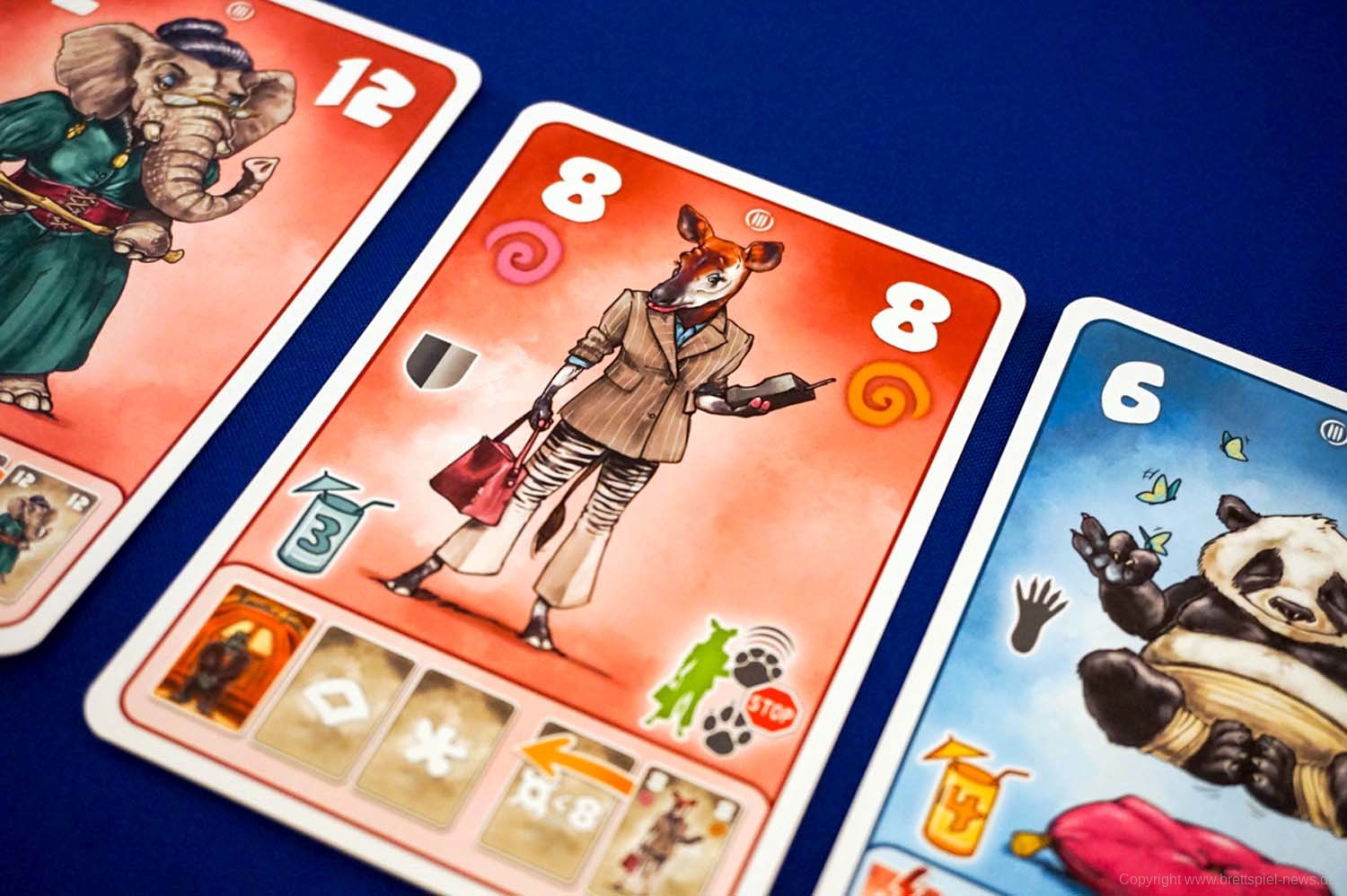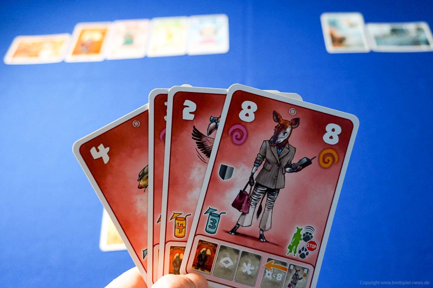 Der einzige Haken sind die 12 verschiedene Effekte, wovon jede Karte einen besitzt. Zunächst hatte ich bei den Karteneffekten einen kleinen Knoten im Hirn und konnte mir die 12 verschiedenen Effekte einfach nicht merken. Hat man aber die ersten Partien einmal gespielt, versteht man die Symbolik immer besser und der Spielgenuss steigt durch den flüssigen und schnellen Ablauf des Spiels. Gerade in einer Runde mit drei oder vier Spielern entstehen so witzige, aber auch Situationen zum Verzweifeln.