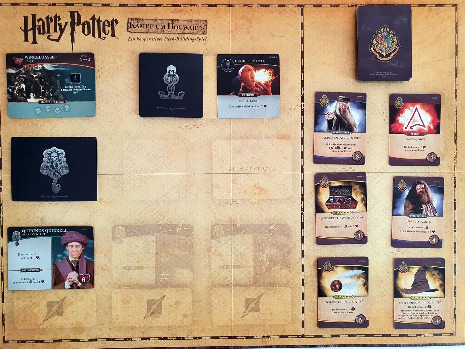 Zu Beginn möchte ich anmerken, dass ich gerne Harry Potter schaue, allerdings kein wirklicher Fanboy bin. Dieses Spiel jedoch hat mein Interesse an Harry Potter erneut geweckt. HARRY POTTER: KAMPF UM HOGWARTS hat mir sehr gut gefallen, weil ich das Gefühl hatte, ein Teil im Kampf gegen Lord Voldemort zu sein. Das Spiel hat eine hervorragende Anleitung und akzeptables Spielmaterial.