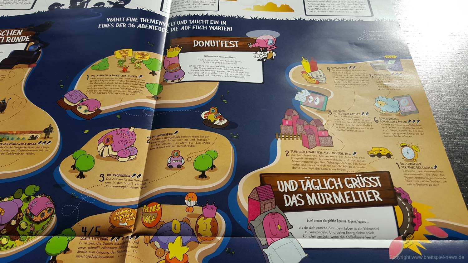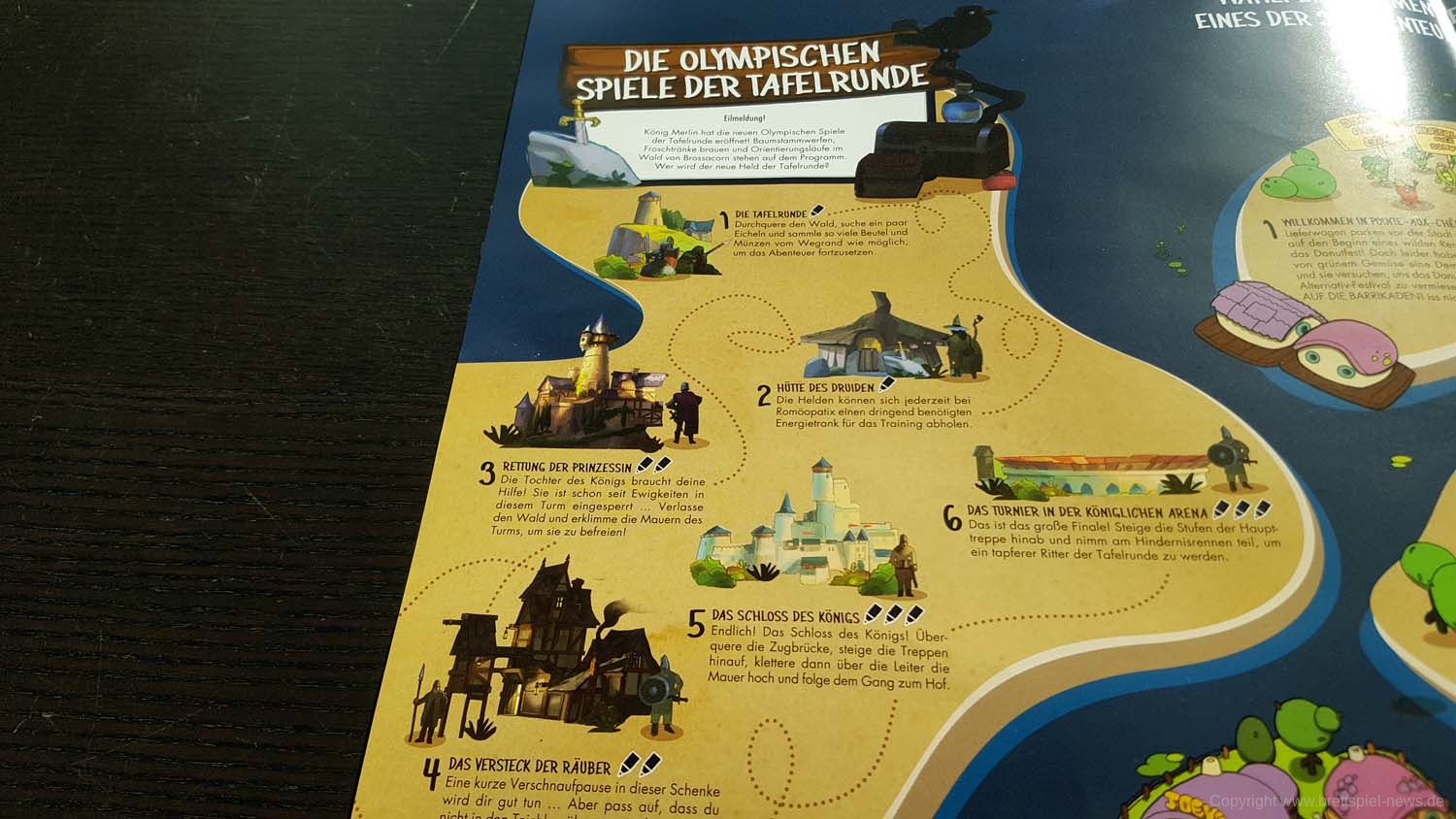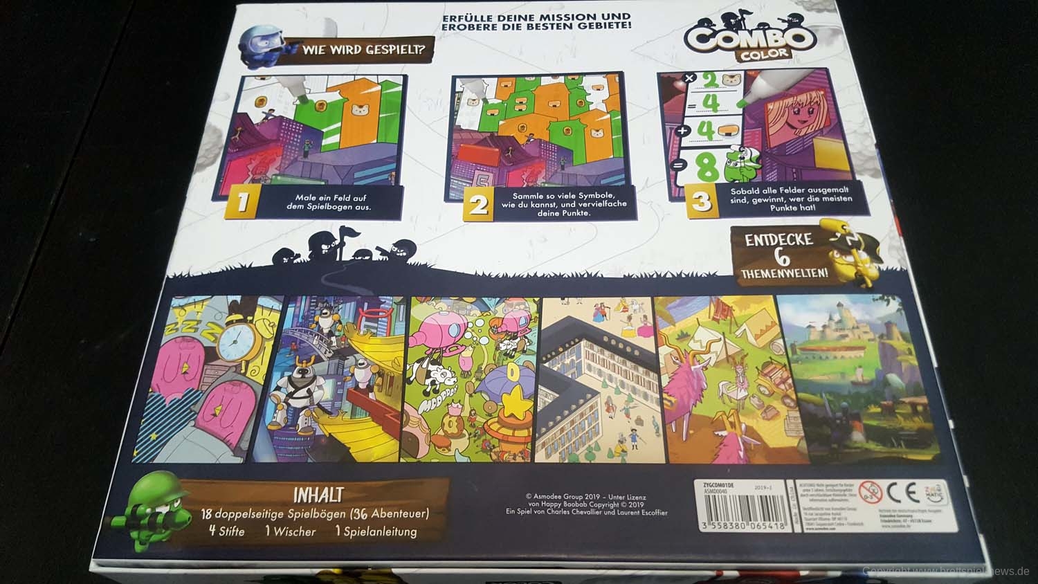 Sicher hat jeder schon einmal im Leben den Fehler gemacht und einen Textmarker über dunkler Tinte verwendet. Ein ähnlicher Effekt tritt bei COMBO COLOR auf, lässt sich wahrscheinlich aber auch nicht vermeiden. Die Anleitung ist leicht verständlich und auf der Rückseite ist ein Poster mit kleinen Storys zu den einzelnen Spielplänen.