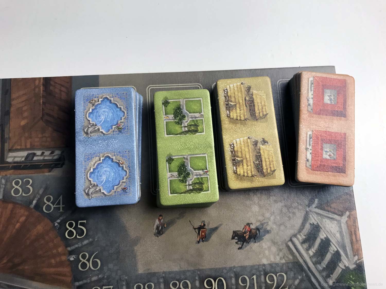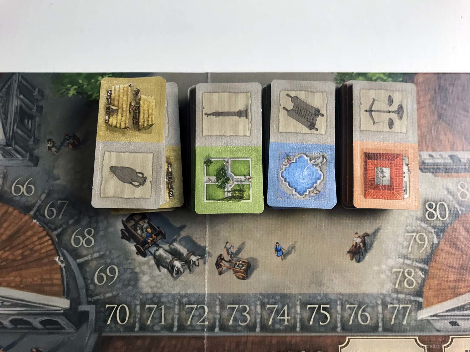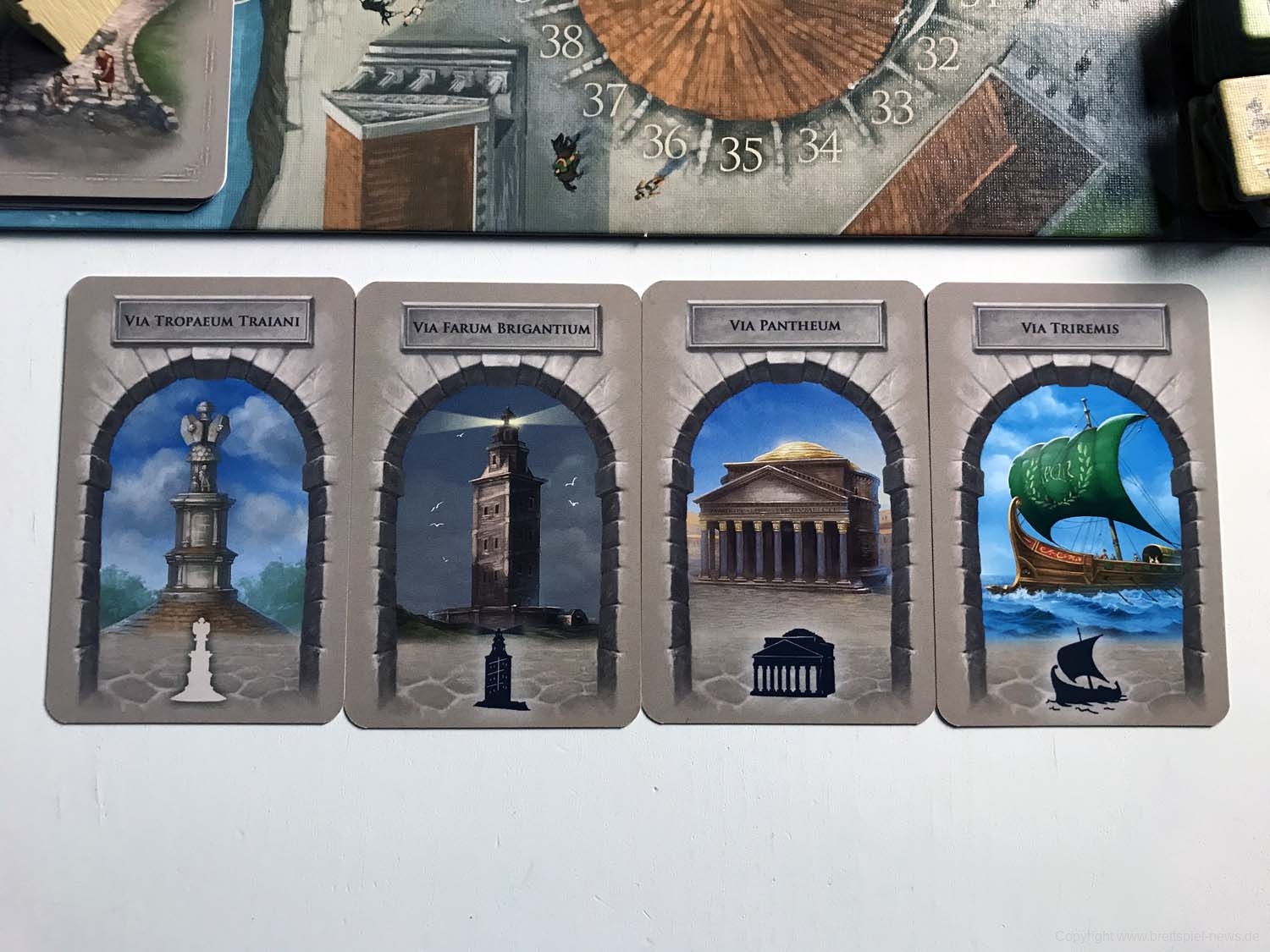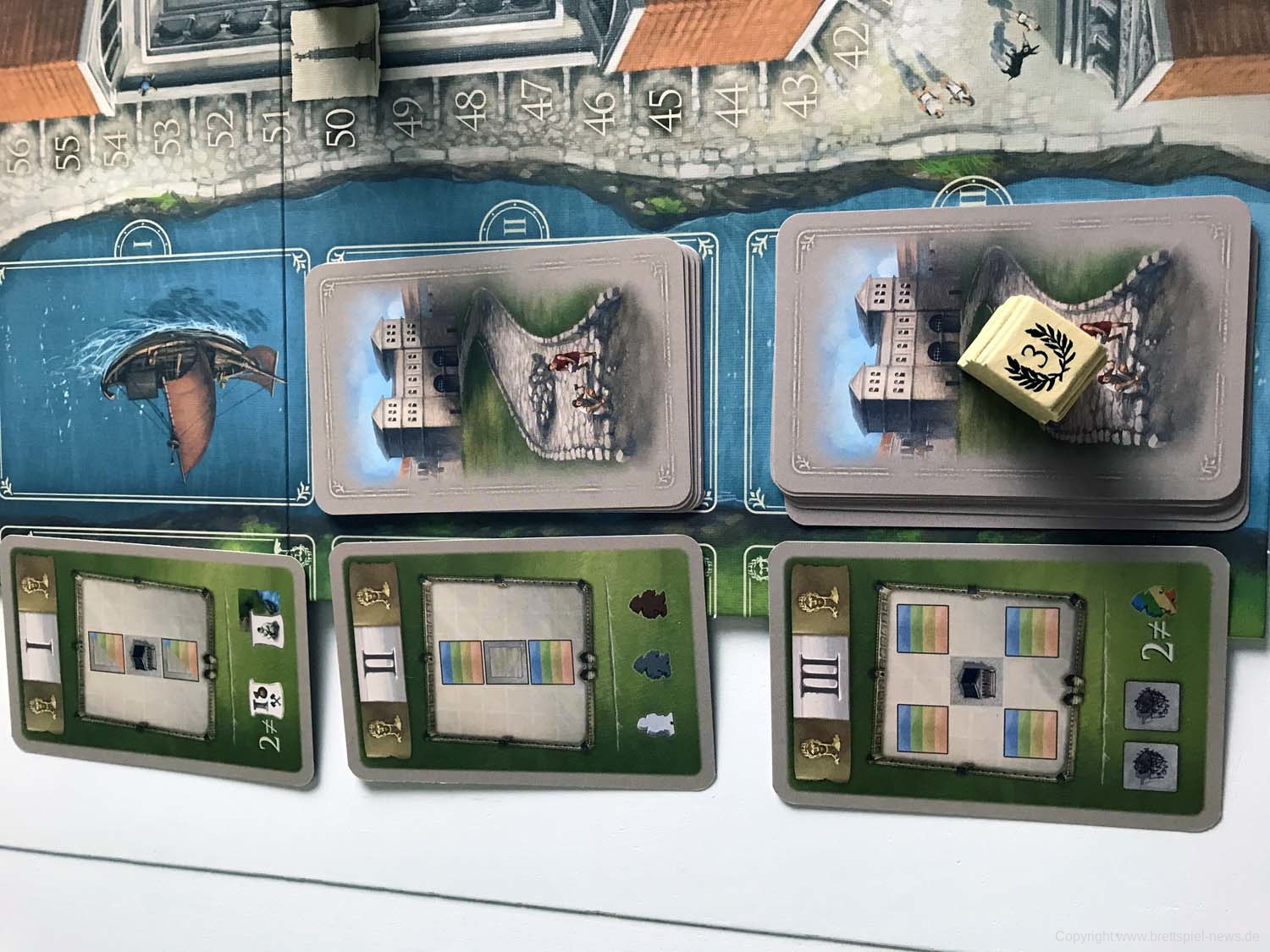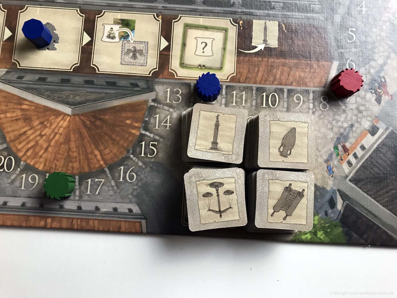 Dennoch handelt es sich bei FORUM TRAJANUM nicht um ein schlechtes Spiel. Die Regel ist verständlich geschrieben und wird auf kleinen Übersichtskarten sinnvoll zusammengefasst. Das Material ist von sehr guter Qualität. Die Downtime zwischen den Zügen ist gering. Wer dem Spiel den bereits erwähnten Glücksfaktor verzeiht, wird zudem aufgrund der zahlreichen Siegpunktmöglichkeiten viel experimentieren können.