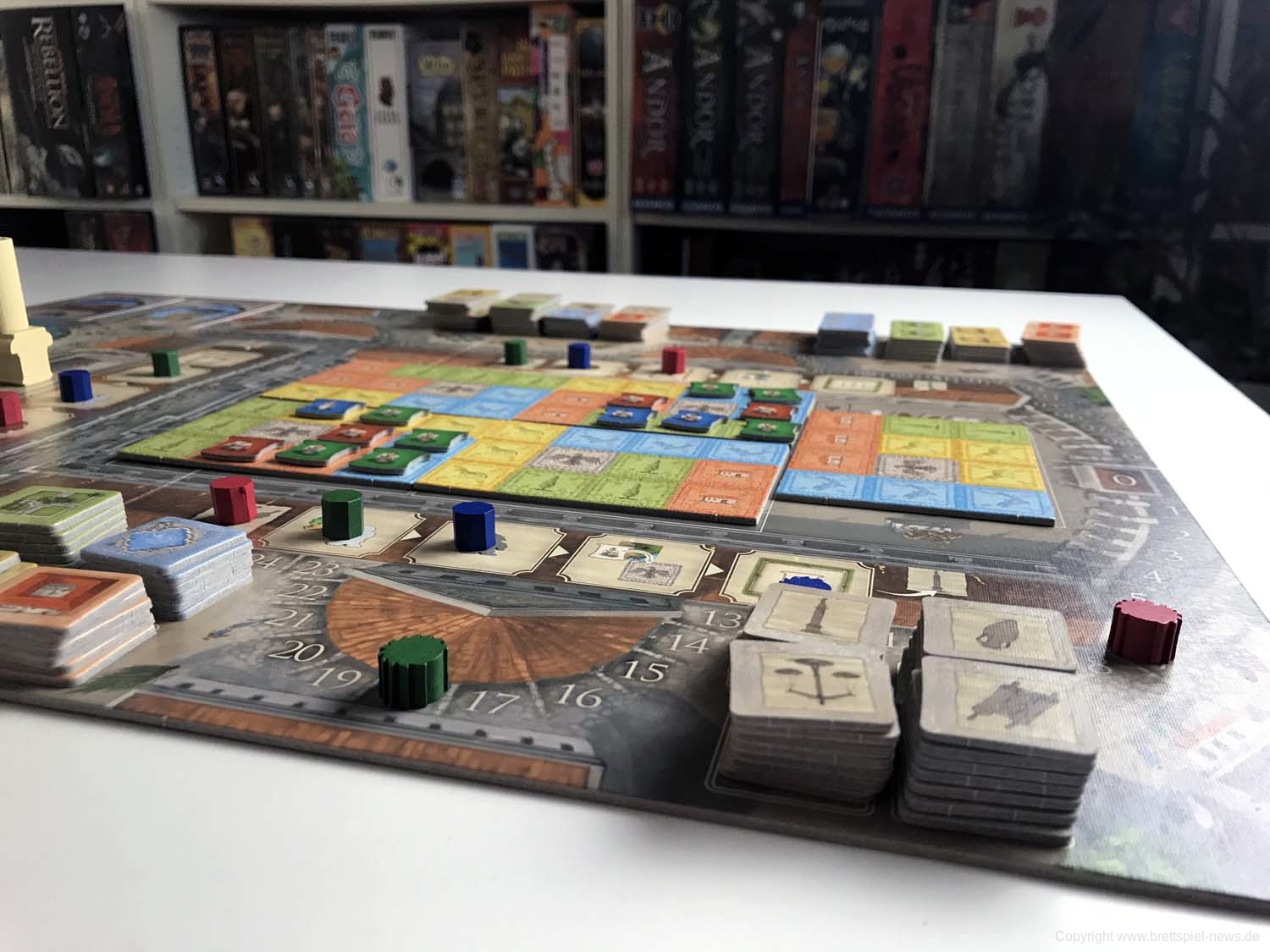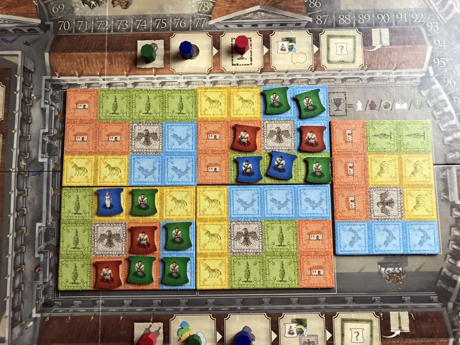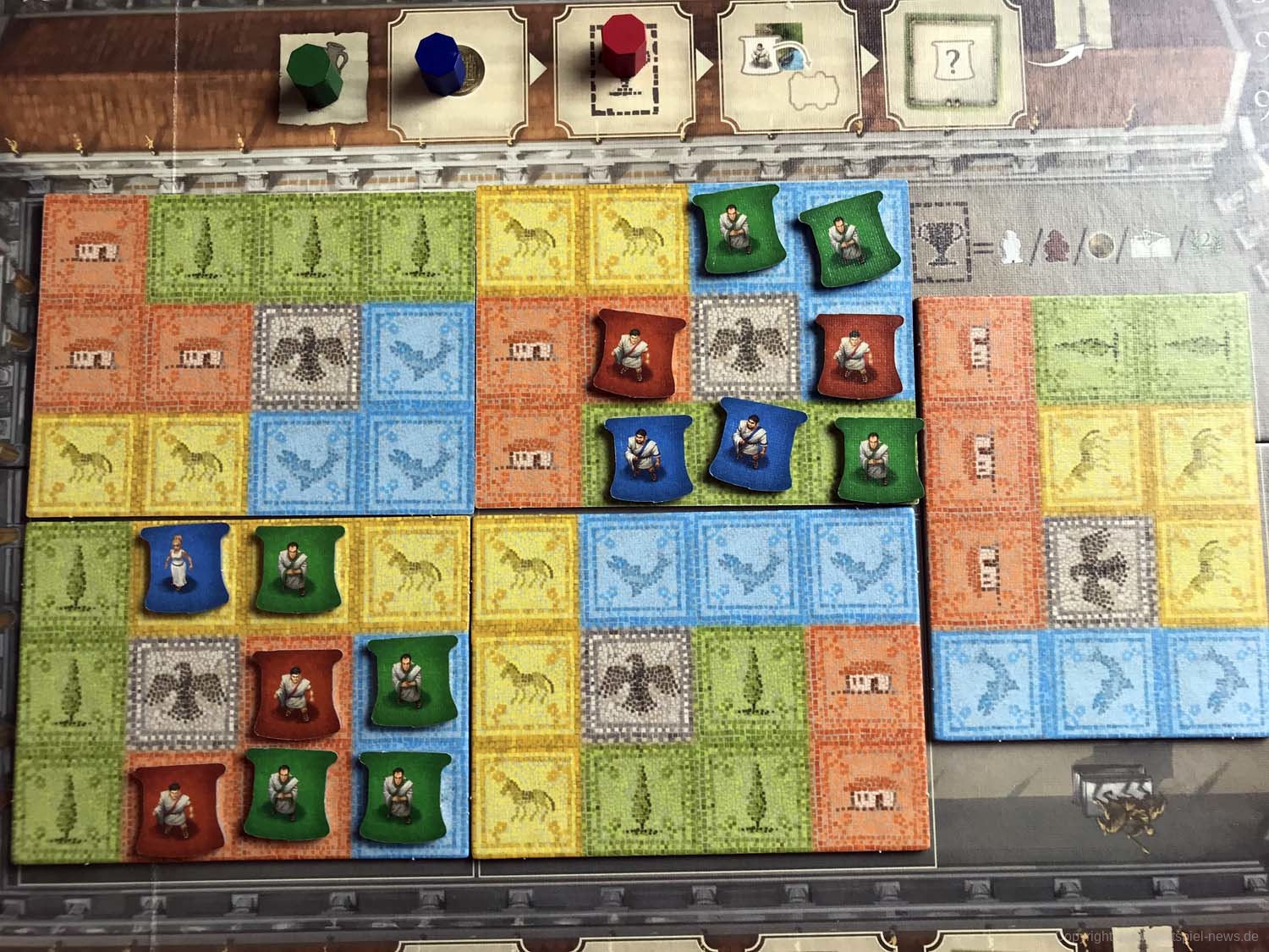 Problematisch ist jedoch der hohe Glücksfaktor im Spiel durch das verdeckte Ziehen der Plättchen und das anschließende Draften. Dieser wird zwar durch die Anwendung von Gehilfen und Tribunen abgemildert, dennoch hatten wir in unseren Partien das Gefühl, zu wenig Einfluss nehmen zu können. Auf diese Weise wird den Spielern die strategische Ausrichtung im Spiel und die Spezialisierung unnötig erschwert. Das ist frustrierend, da FORUM TRAJANUM zwar mit vielen möglichen Strategien aufwartet, den Spielern jedoch nicht das notwendige Werkzeug an die Hand gibt, diese auch zielstrebig zu verfolgen.