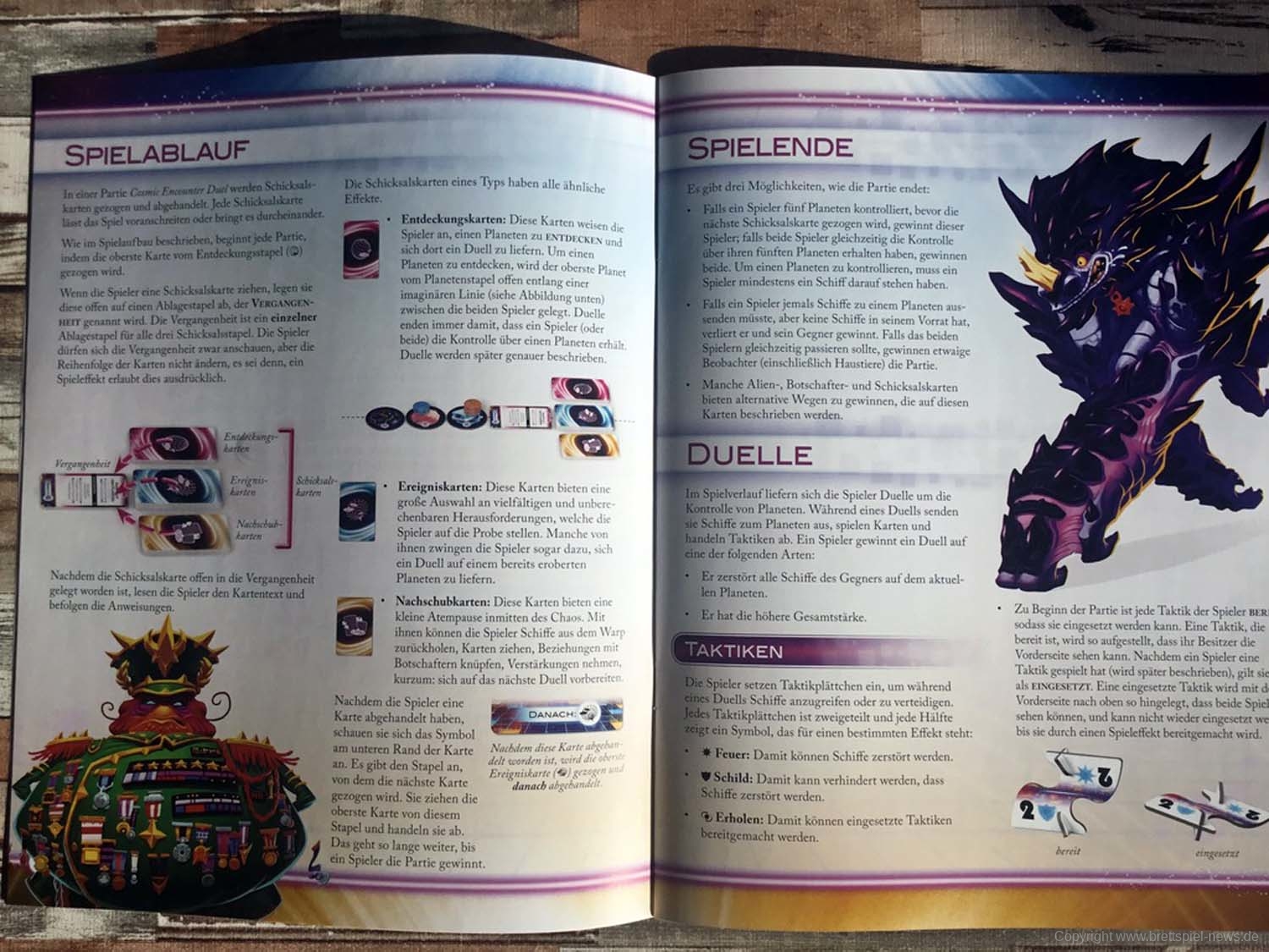 Dennoch ist COSMIC ENCOUNTER DUEL kein schlechtes Spiel geworden. Es bietet eine einfache und schnelle Partie COSMIUC ENCOUNTER für zwei Personen. Kein Wunder, denn mit Bill Eberle und Peter Olotka sind zwei Schöpfer des Klassikers beteiligt.