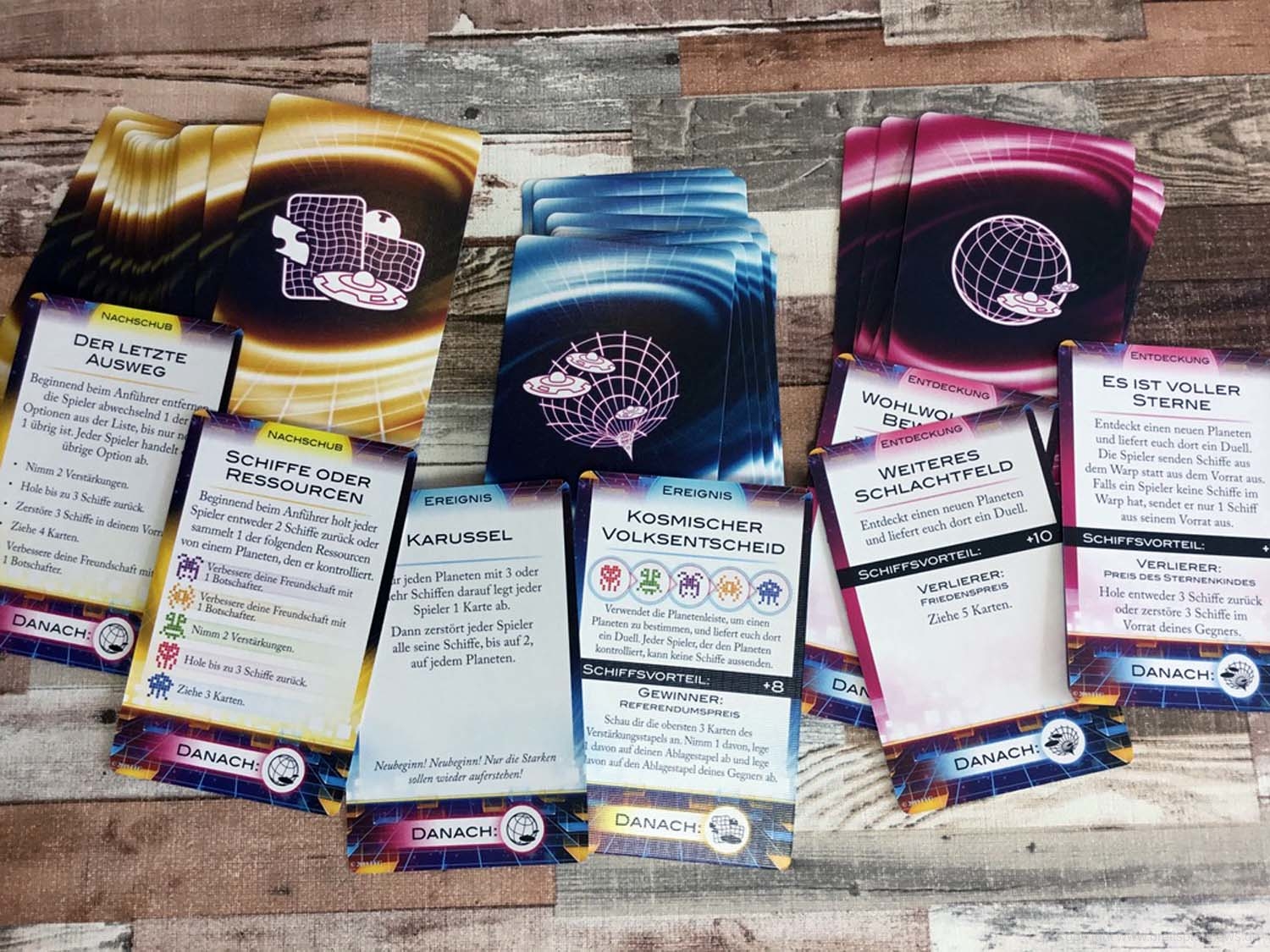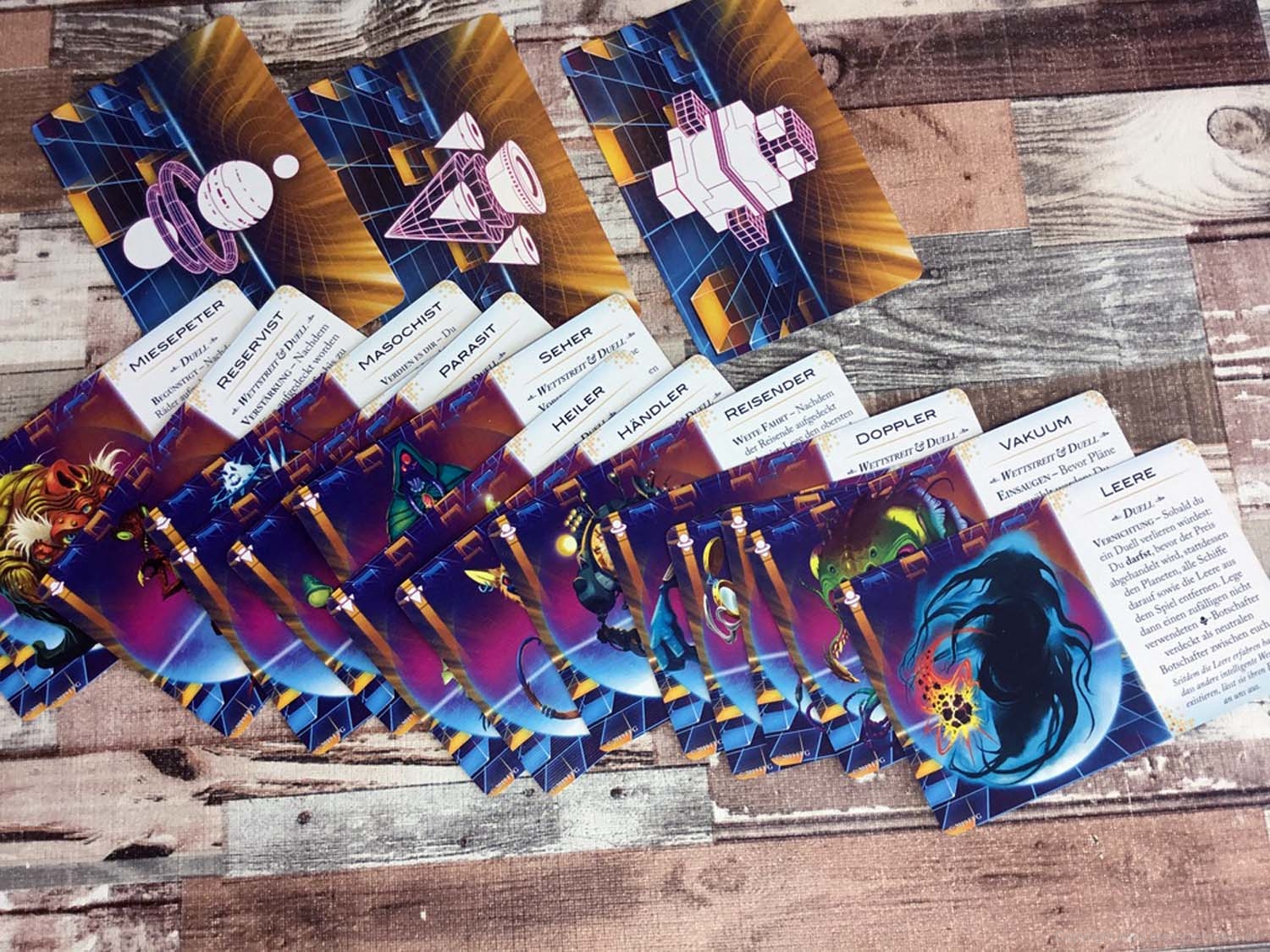COSMIC ENCOUNTER DUEL ist ein kartengetriebenes Spiel. Es gibt witzige Texte und Zitate auf den Karten und es sorgt mit abgedrehten Regeln immer wieder für neue Situationen. Die Boni und Preise in den Duellen sind meist sehr reizvoll. Dadurch kann ein Duell sich schon einmal zu einem Ringen ums Verlieren entwickeln.