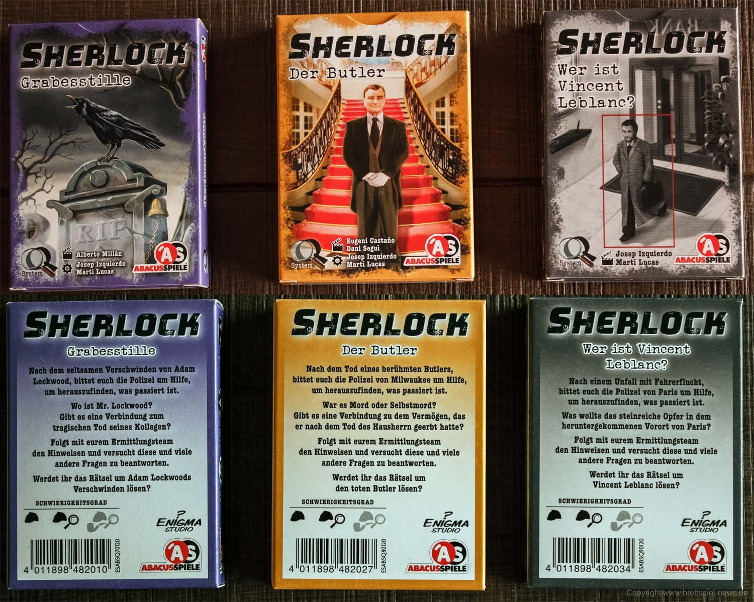 Nachdem 2019 insgesamt 6 Fälle der SHERLOCK-Reihe auf Deutsch erschienen sind, gibt es nun den ersten Nachschub in 2020. Die 3 frischen Rätselfälle mit den Titeln GRABESSTILLE, DER BUTLER und WER IST VINCENT LEBLANC? werden vom Verlag als mittelschwer eingestuft.