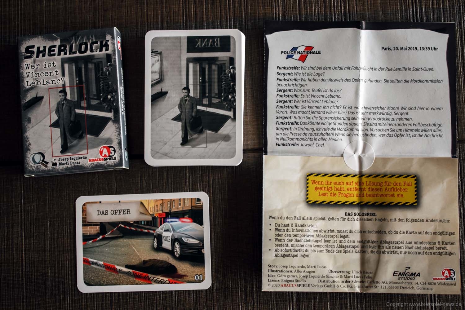 Thematisch sind die drei neuen Fälle gewohnt gut erzählt. Die Stories um einen vermissten Totengräber, einen verstorbenen Butler und den mysteriösen Leblanc können ohne Ausnahme die Spieler mitreißen. Jede Geschichte bietet wie gewohnt neben dem zu lösenden Fall auch einige Nebengeschichten, die das Rateteam vom eigentlichen Pfad ablenken sollen. In der Vergangenheit war dies dann teils auch der Knackpunkt bei einzelnen Fällen, da es nur schwer zu erahnen war, in welche Richtung sich die Ereignisse entwickelt haben und somit am Ende entweder zu viele Karten aufgedeckt waren oder wesentliche Informationen nicht erkannt werden konnten.