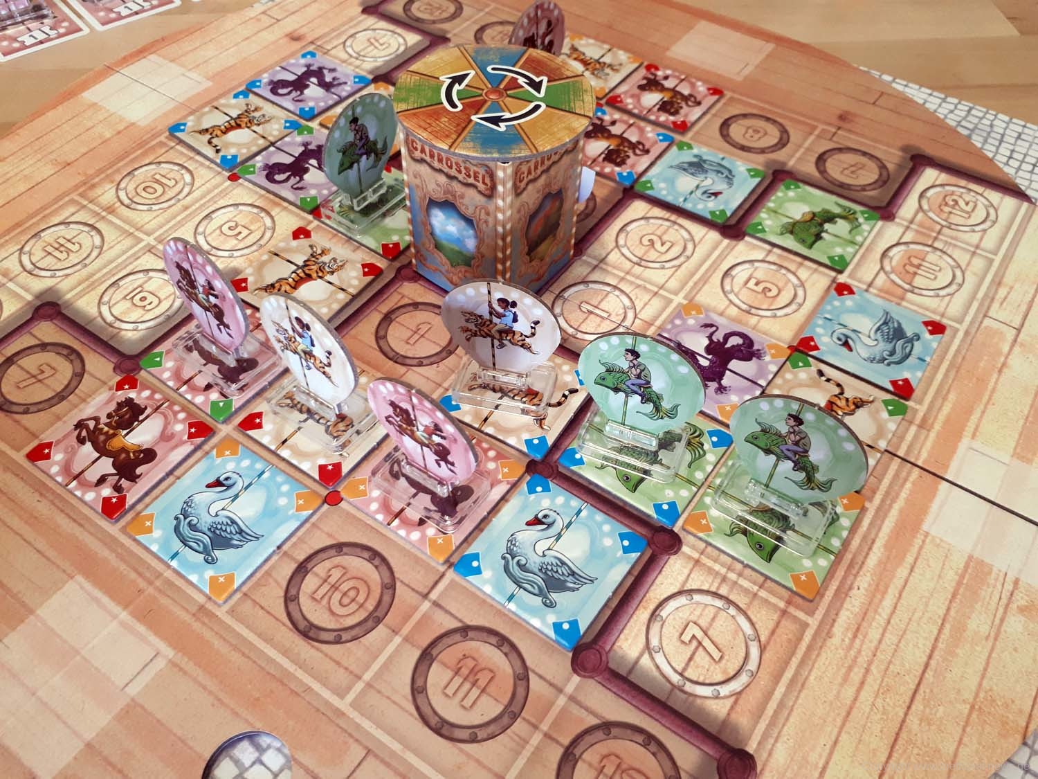 Aus den oben genannten Gründen schätze ich CARROSSEL auch nicht als Familienspiel ein, obwohl es sich auf den ersten Blick als solches präsentiert. Gerade Gelegenheitsspieler:innen könnten schnell einen Drehwurm bekommen und vor lauter Überforderung frustriert den Tisch verlassen.
