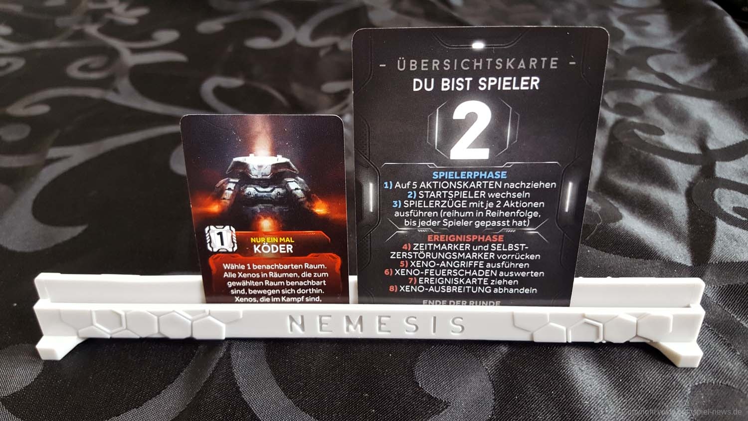 Da es ziemlich schnell passieren kann, dass ein Spieler frühzeitig ausscheidet, bietet NEMESIS die Möglichkeit, dass ein ausgeschiedener Spieler die Kontrolle der Xenos übernimmt. Dieser bekommt dann ein neues Playerboard mit Xenoaktionskarten und übernimmt die Steuerung der Aliens, was es für die anderen nicht leichter macht, denn auf glückliche Zufälle braucht nun keiner mehr zu hoffen. Auf der Rückseite des Spielplans ist ein anderer Schiffsaufbau abgebildet, welcher verwinkelter, mit Sackgassen ausgestattet und etwas schwieriger zu spielen ist. Wer allein oder kooperativ spielen möchte, nimmt statt der gewöhnlichen Zielkarten einfach die Solo-/Koop-Zielkarten und spielt ohne menschliche Widersacher. Auch das Spielen einer Kampagne, in Form eines Web-Comics, ist möglich. Dieser Comic kann gratis als PDF heruntergeladen werden.