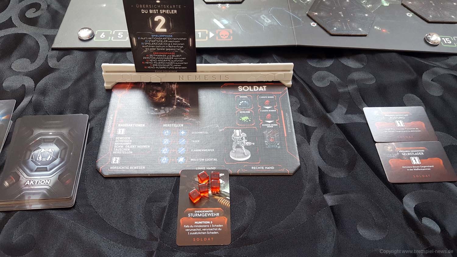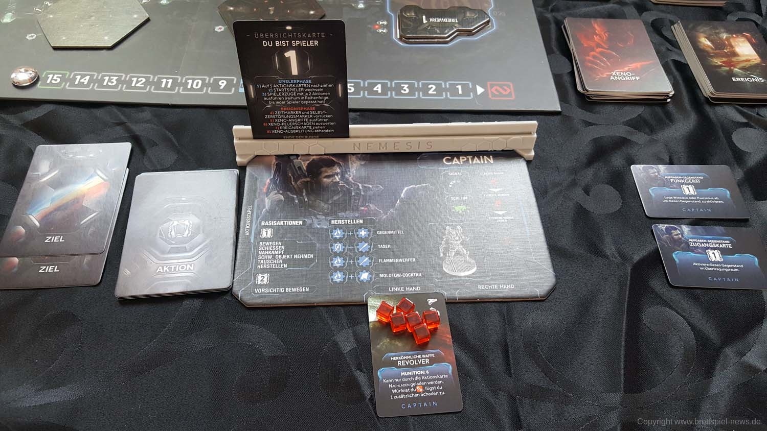 Ähnliche Erfahrungen habe ich ebenfalls gemacht. Das Nachwirken des Gefühls eines Vertrauensbruchs hängt damit zusammen, dass dieses Spiel einen in seine Welt zieht. Genau das soll ein Dungeon Crawler ja auch tun. Einem das Gefühl vermitteln, man sei dieser Charakter auf diesem Raumschiff. Und genau das tut NEMESIS. Es ist kein besonders strategisches Spiel. Hier und da muss einmal abgewogen werden, welche Karte jetzt für welche Aktion eingesetzt wird, welcher Weg wohl der sicherste ist, aber die meiste Zeit hängt der Ausgang einer Situation von Zufälligkeiten und dem Verhalten der anderen Spieler ab, was dafür sorgt, dass ich mich nicht mit einer taktischen Analyse à la Eurogame beschäftige, sondern den Moment auf mich wirken lasse. Genau das sorgt für die Spannung in diesem Horror-Thriller aus Resin und Pappe.
