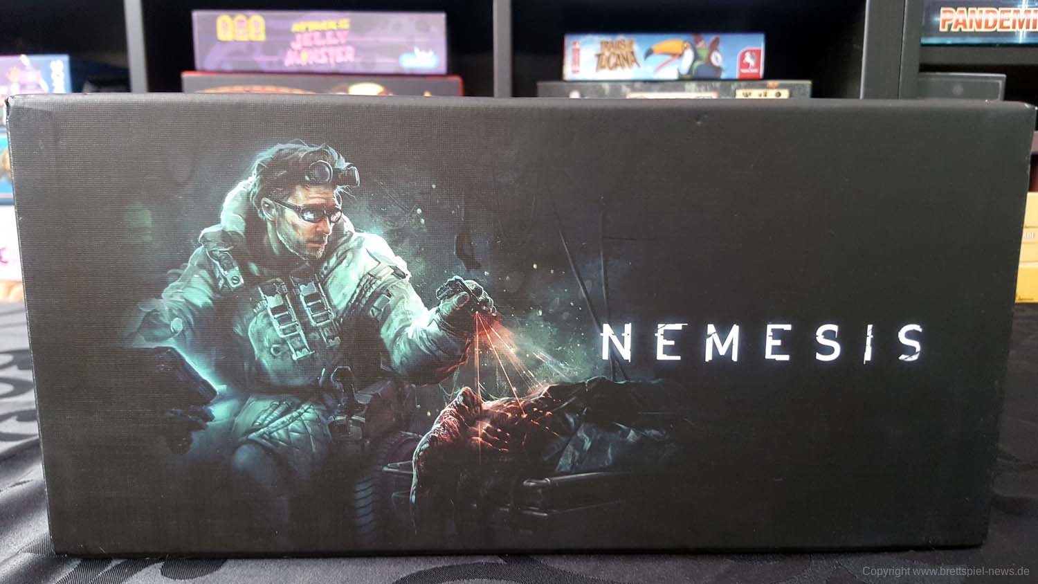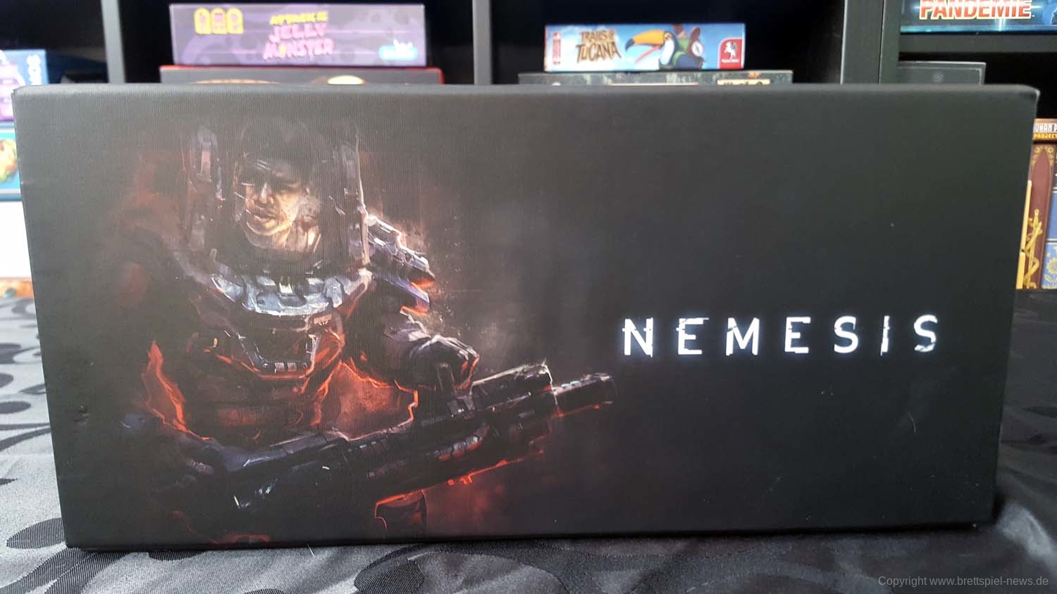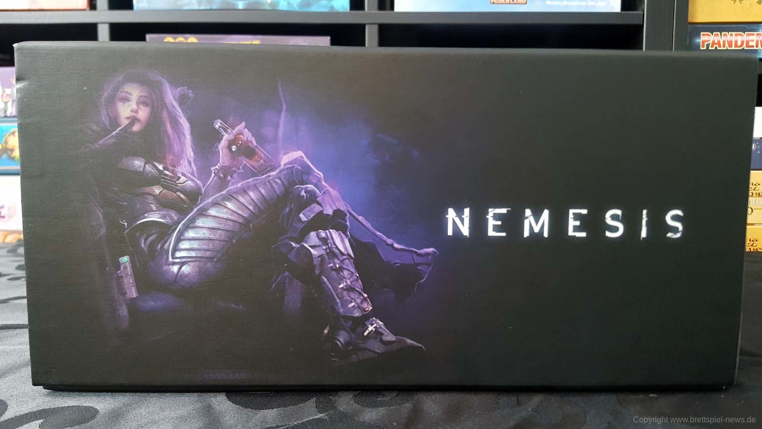 In der kalten Leere des Weltraums hört dich niemand schreien! Plötzlich wachst du aus dem Kryogenschlaf auf. In der Kapsel neben dir liegt die ausgeweidete Leiche eines deiner Crewkollegen. Die Notfallbeleuchtung ist an. Du hast Kopfschmerzen und leidest an temporärer Amnesie aufgrund des Kryogenschlafs. Das Raumschiff namens „NEMESIS“ treibt scheinbar unkontrolliert durch den Weltraum. Was ist an Bord passiert? Noch als du grübelst, steigt hinter dir etwas aus dem Wartungsschacht. Das Unheil nimmt seinen Lauf. NEMESIS ist ein semi-kooperativer Dungeon Crawler in einem Science-Fiction-Horror-Setting, bei dem jeder Spieler die Rolle eines Crewmitglieds der Nemesis übernimmt, welche unterwegs von Aliens angegriffen wurde. Diese gefährlichen Aliens, die im Spiel Xenos genannt werden, befinden sich nun an Deck, aber sie sind nicht immer die größte Gefahr für die Spieler. Wem kann man noch trauen?