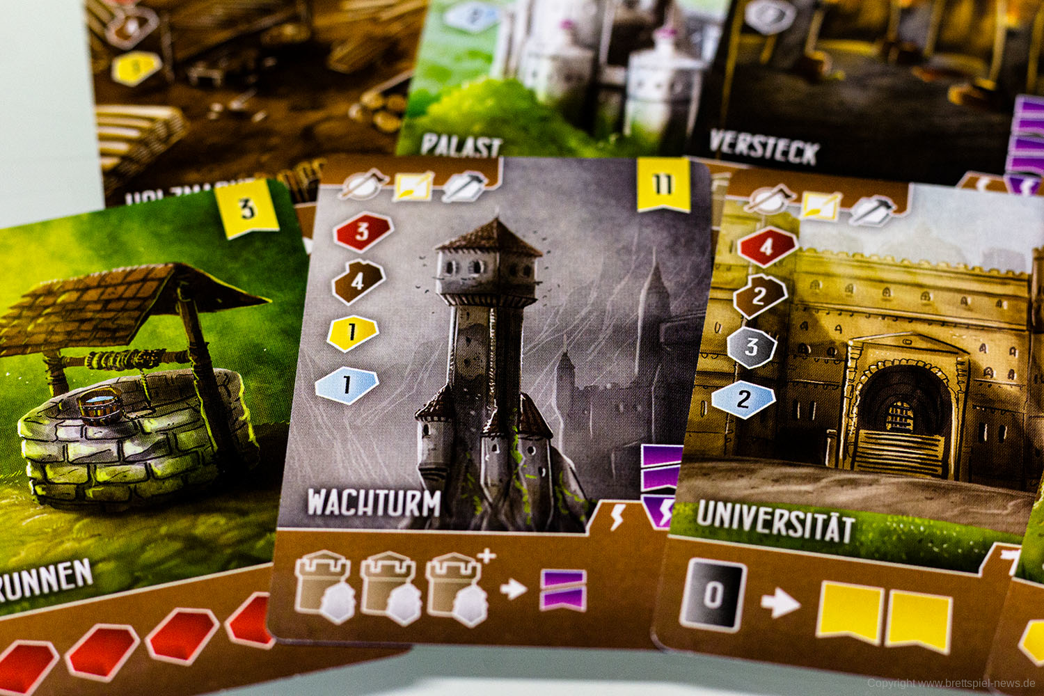 Natürlich sind die Spieler durch die Siegpunktverteilung für das Bauen der Kathedrale und das Errichten der Gebäude in den Mitteln eingeschränkt, aber durch die verschieden kombinierbaren Gebäude entfalten sich bei jedem Spiel neue Strategien, den Gegnern einen Schritt voraus zu sein. Das Spiel baut dabei auf einem großen Strategie-Baustein auf, bei dem das Glück sehr minimal ist.